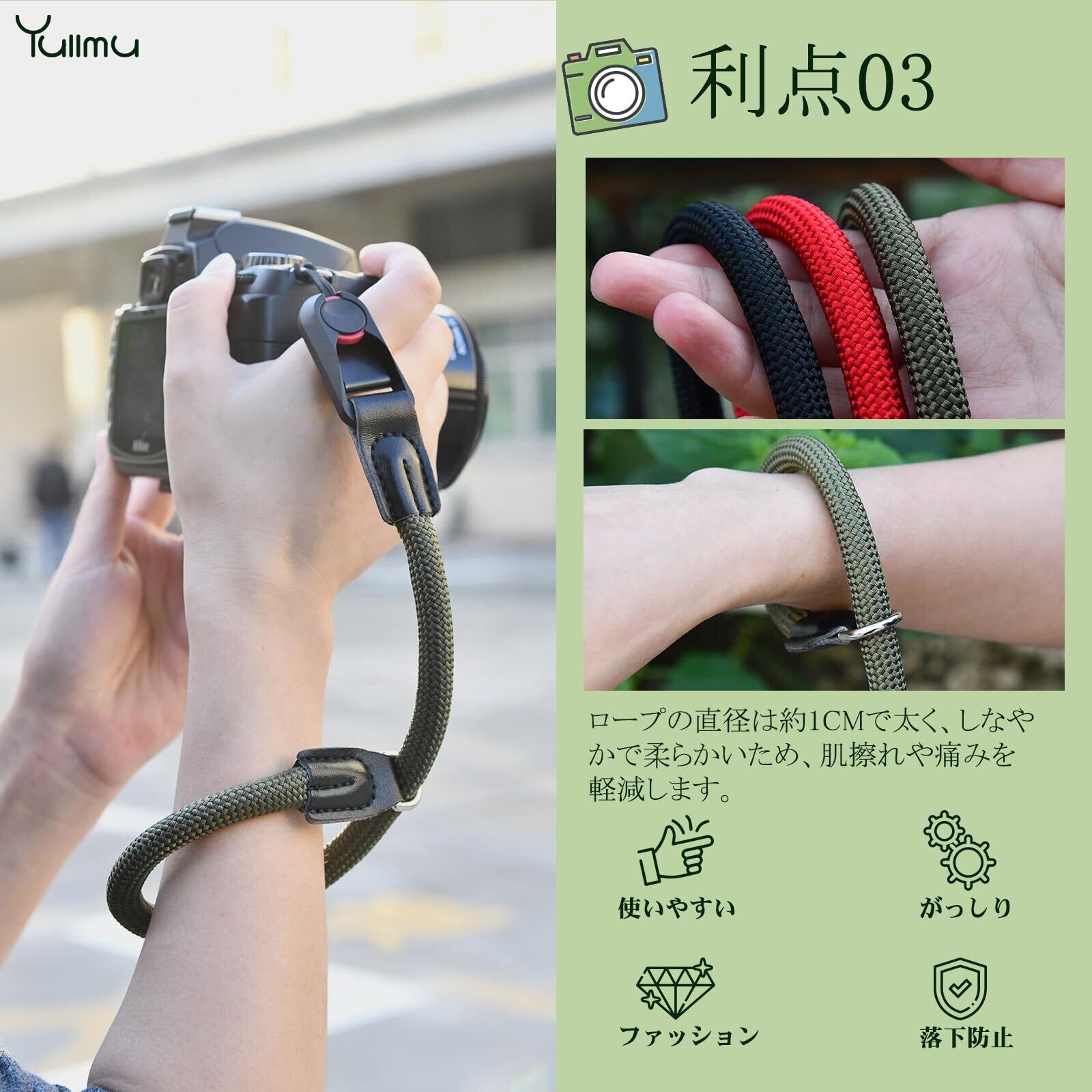 [Yullmu] カメラストラップ カメラネックストラップ クライミングロープ アンカーリンクス 三角リング付き 3層構造 一眼レフカメラ 黒い