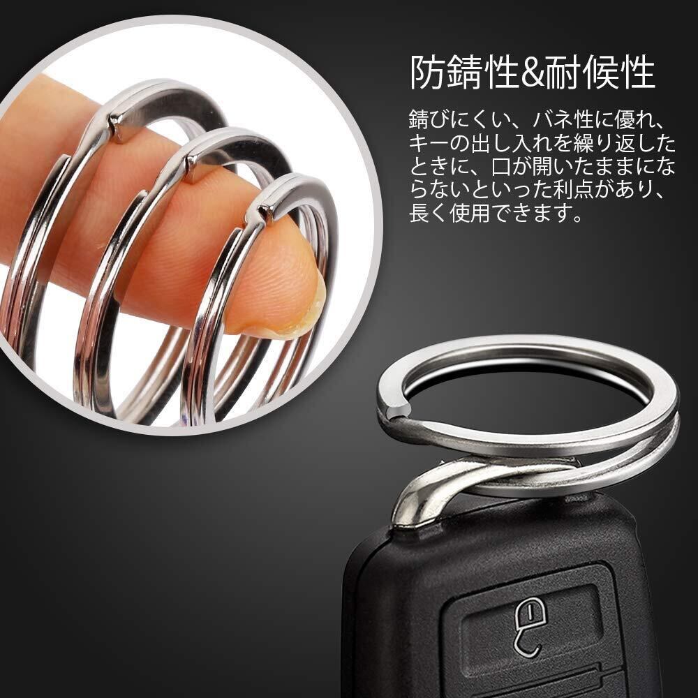 防錆性&耐候性 錆びにくい、バネ性に優れ、キーの出し入れを繰り返したときに、口が開いたままにならないといった利点があり、長く使用できます。環が二重になっているので、連結させたものが脱落しにくいです