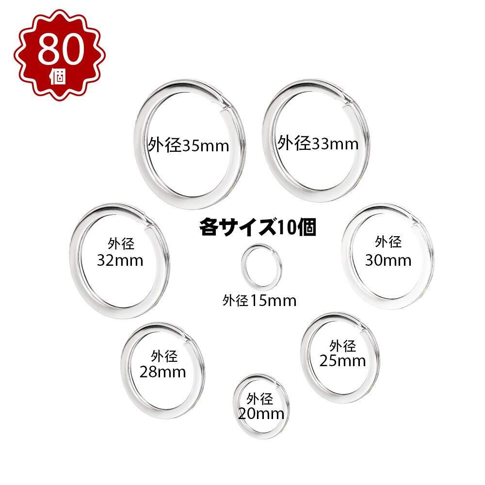 LEOBRO 二重リング 平キーリング 80個セット キーホルダー 二重カン ダブルリングー キーホルダーリング金具 パーツ 部品 キーリング 外径15mm 20mm 25mm 28mm 30mm 32mm 33mm 35mm 各サイズ10個 シルバー