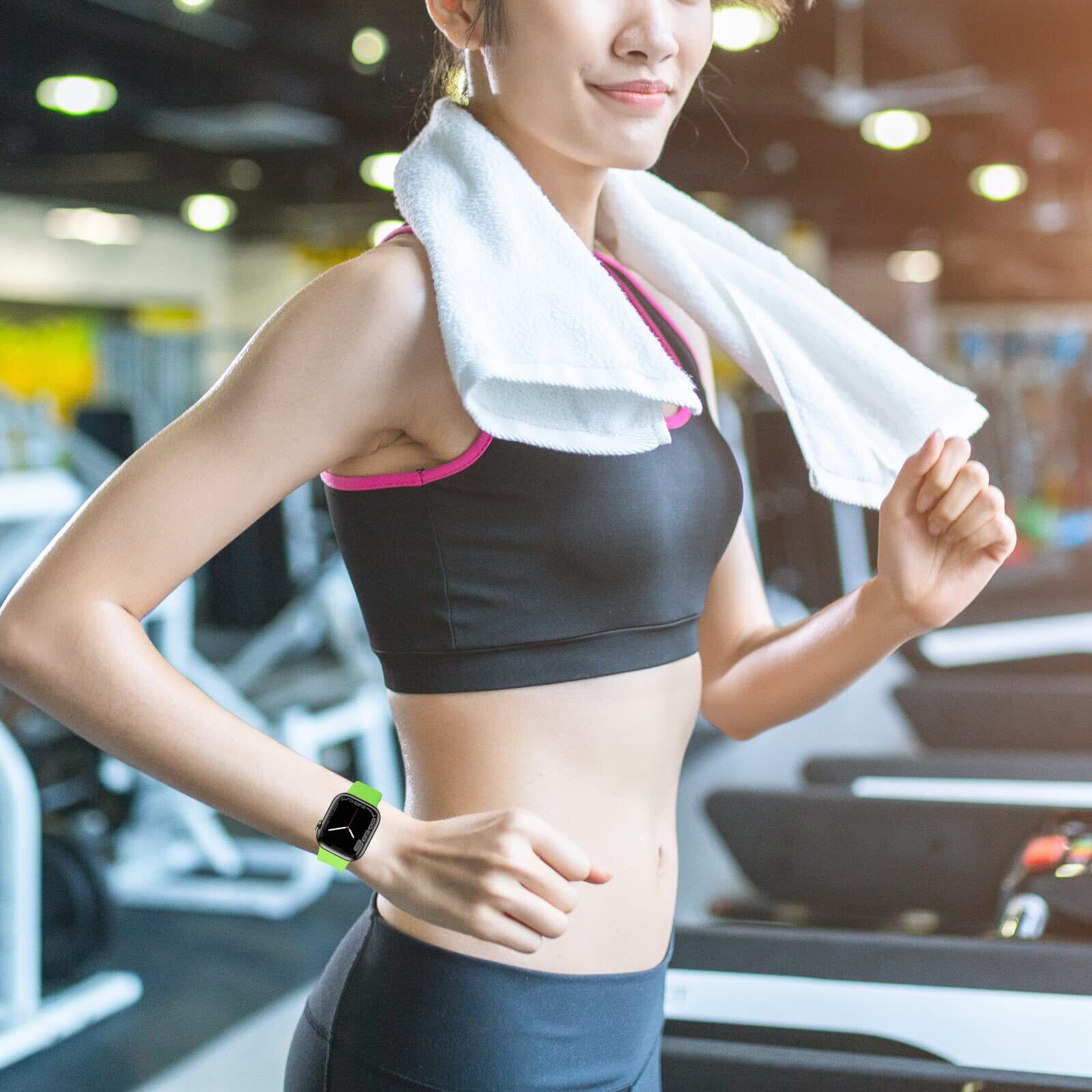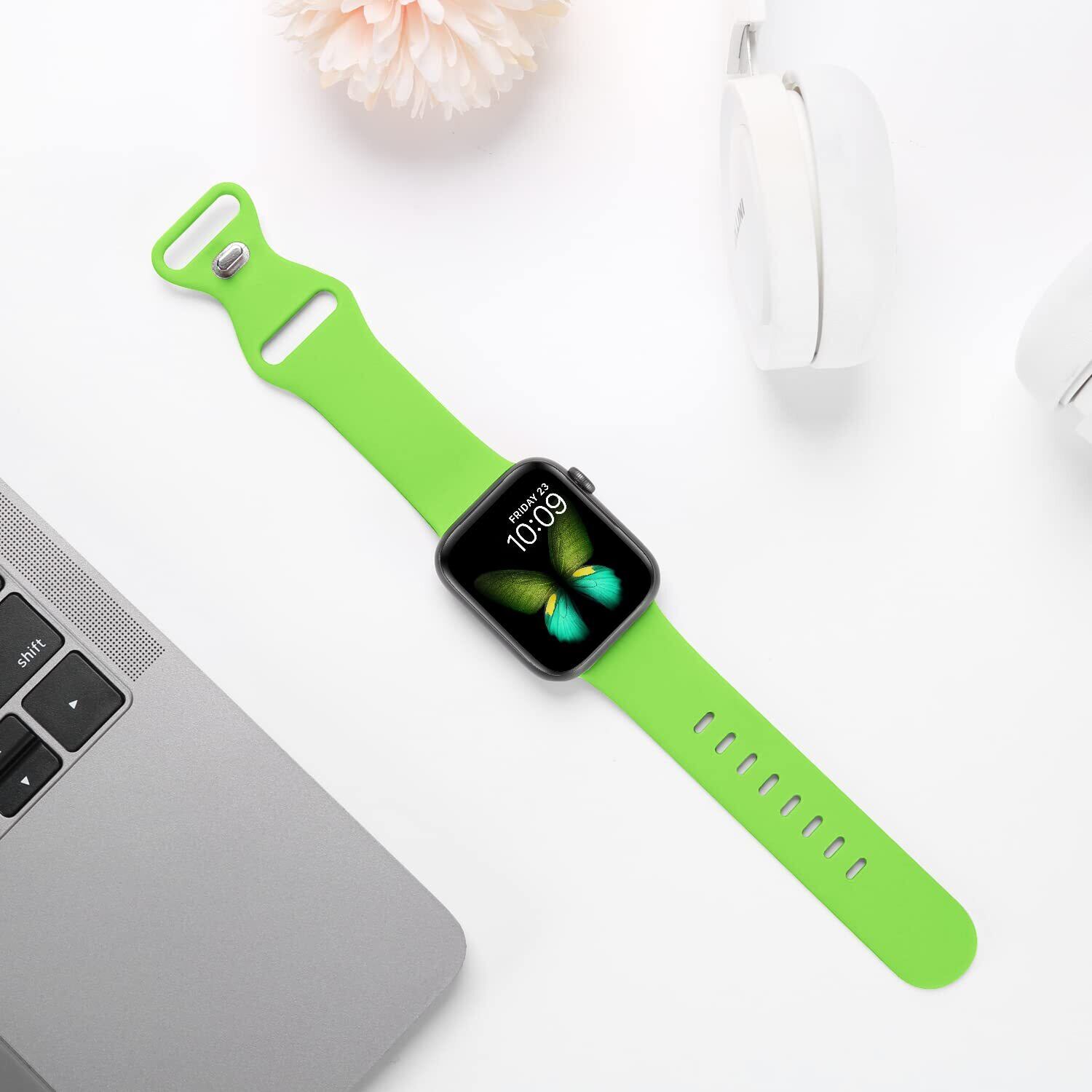 Tighesen コンパチブル Apple Watch バンド アップルウォッチ バンド 40mm 41mm 42mm 44mm 45mm 46mm 49mm for iWatch Ultra 2/Ultra SE Series 10/9/8/7/6/5/4 に対応 スポーツバンド 交換ベルト シリコン製 柔らかい 通気 耐衝撃 防汗 男性 女性 (アップルグリーン, 44/45/46/49mm S/M)