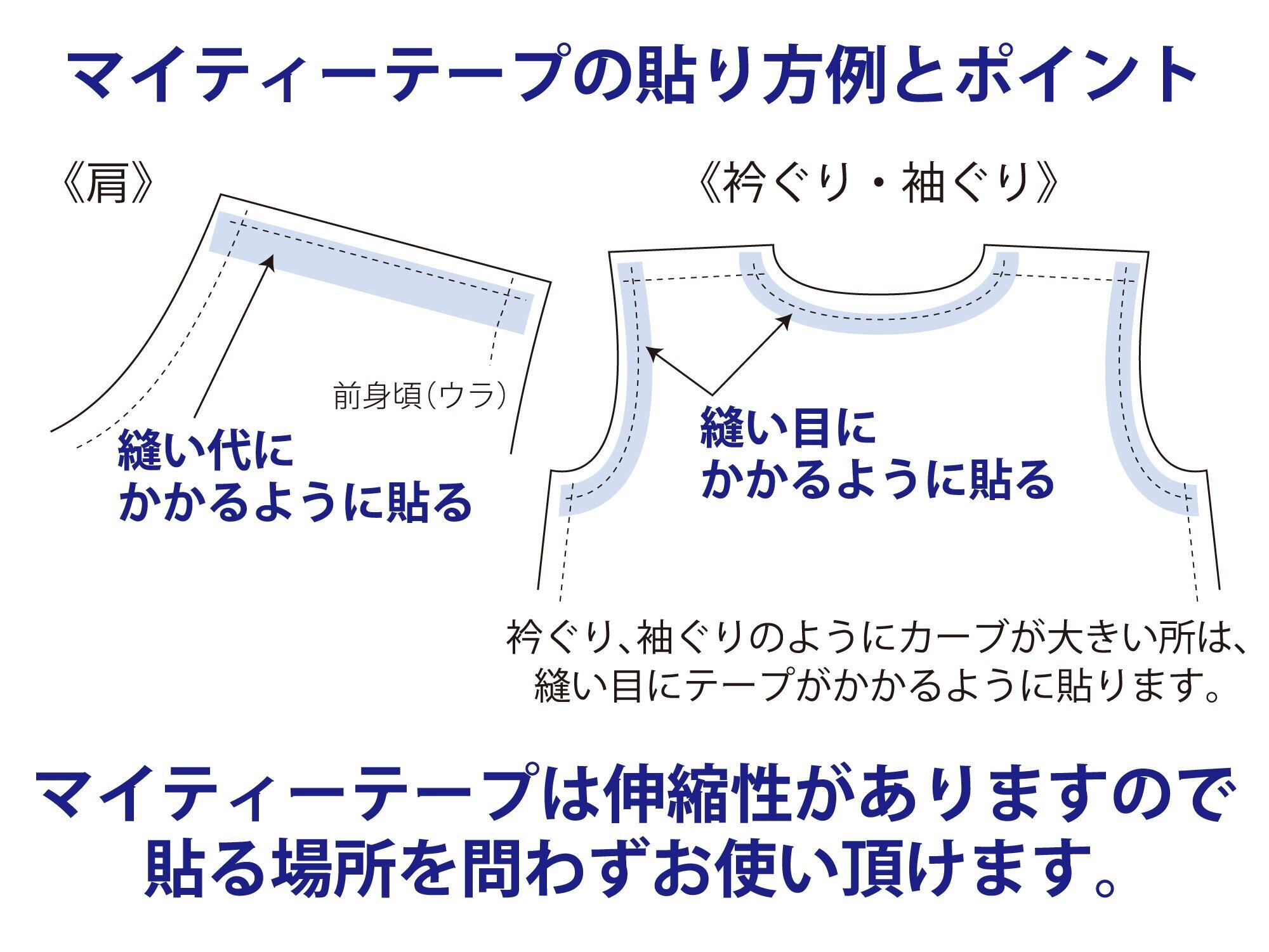肩・ポケット口・スカートのあき・襟ぐりなど、伸縮性があるので貼る場所を問わずにお使いいただけます。