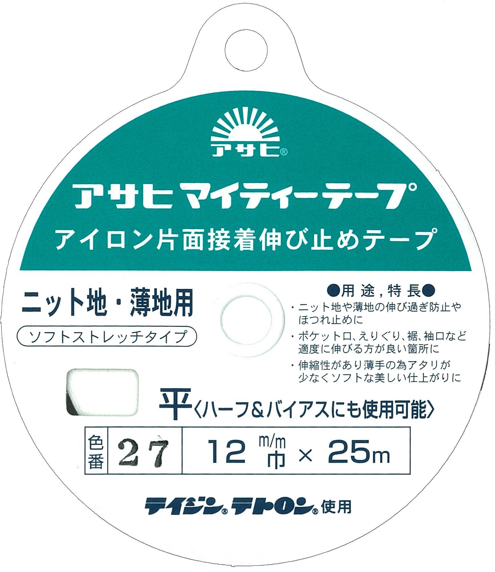アサヒ アイロン片面接着テープ マイティーテープ 12mm幅 白 25m巻