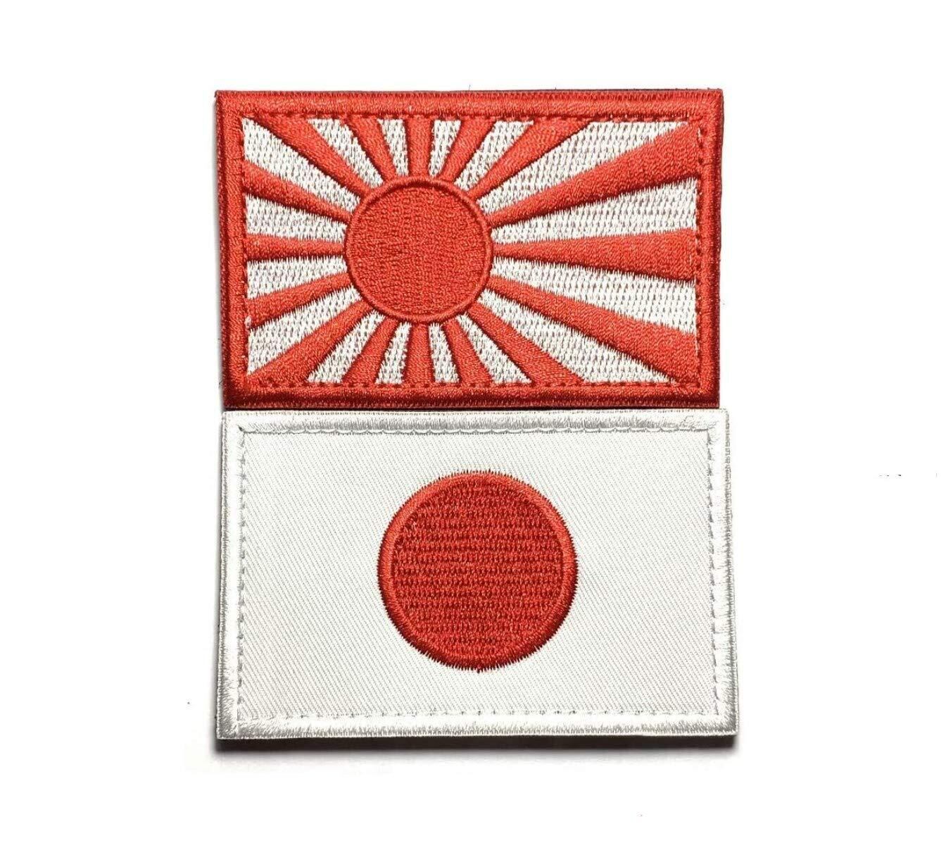 【Shiseikokusai 】日本国旗ワッペン 日本海軍 旭日旗 2枚セット 自衛隊 高密度刺繍 腕章 ワッペン マジックテープ 日の丸 パッチ サバゲー/バッグ/キャップ などに パッチ