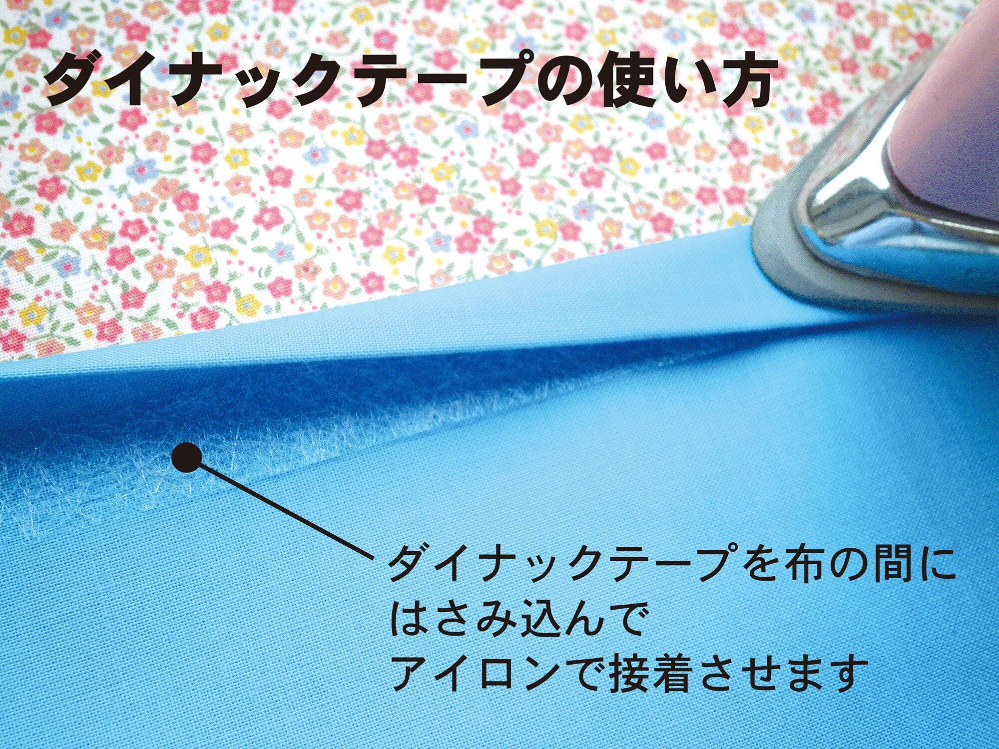 布の間にダイナックテープを挟んで、アイロンで押さえるだけで簡単接着!
