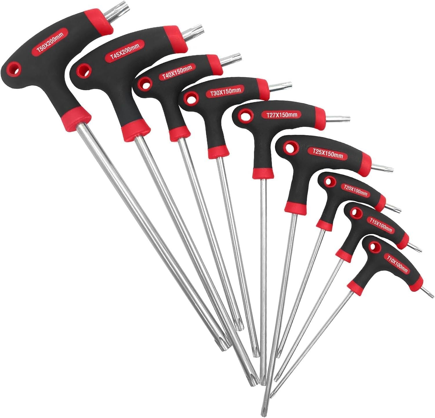 KEWAYO 9本 六角レンチ セットTハンドル六角レンチ 六角キーアレンレンチ 車 機械 修理に適用クロムバナジウム鋼 星型T10 T15 T20 T25 T27 T30 T40 T45 T50