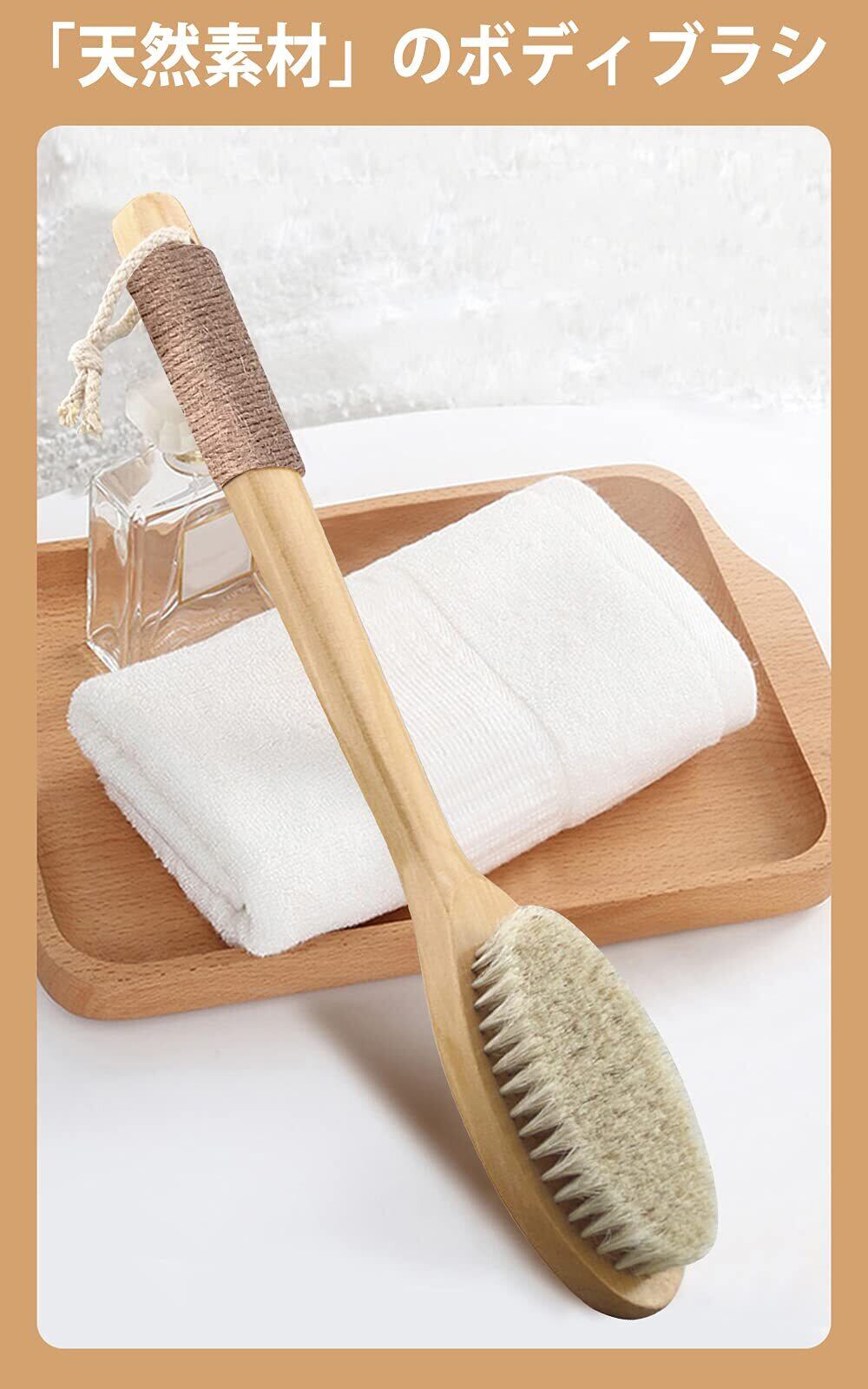 ✨「両方用のボディブラシ」:柔らかすぎず硬すぎず馬毛なので、風呂用またはドライブブラッシング用としてお使えていただきます。お風呂の最中に、背中をゴシゴシ洗いたい人や毛穴汚れをキレイにしたい方にオススメです。●肌もブラシも干した状態で全身をブラッシングして、お肌に優しくて、女性に対しては大人気です。