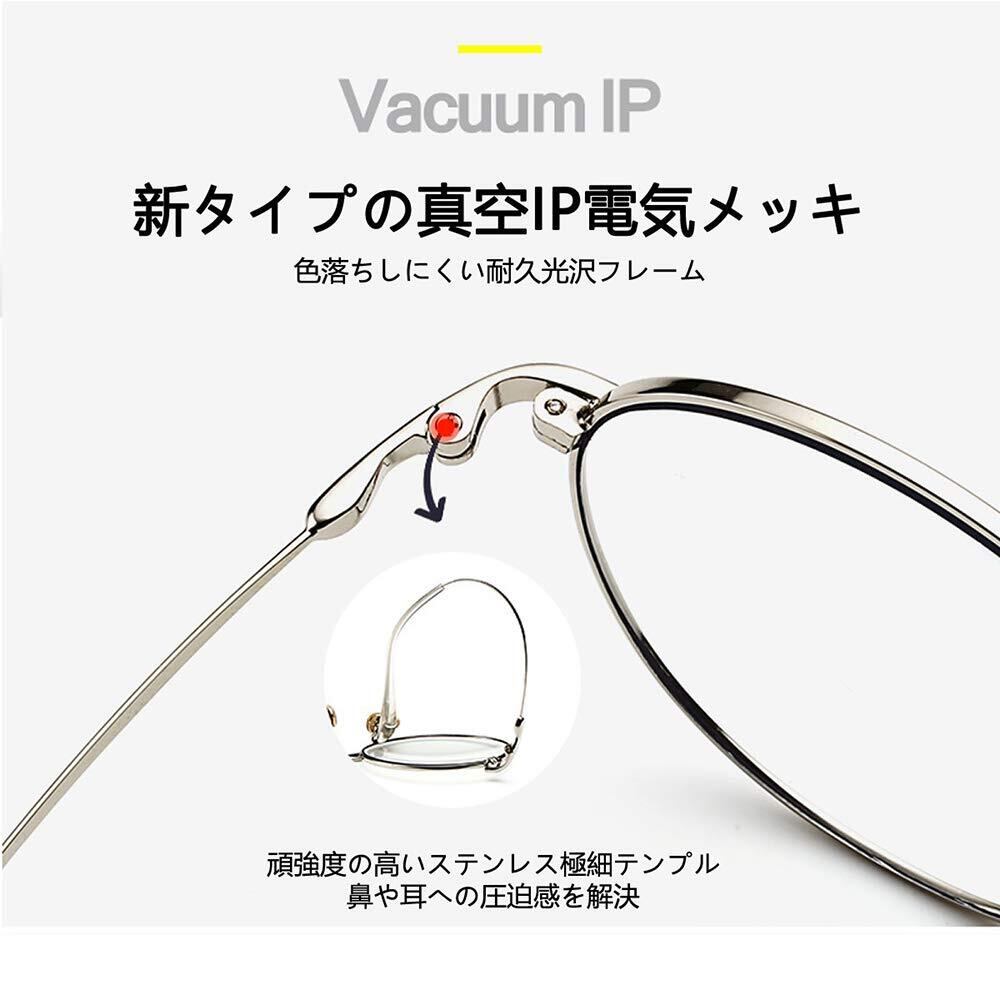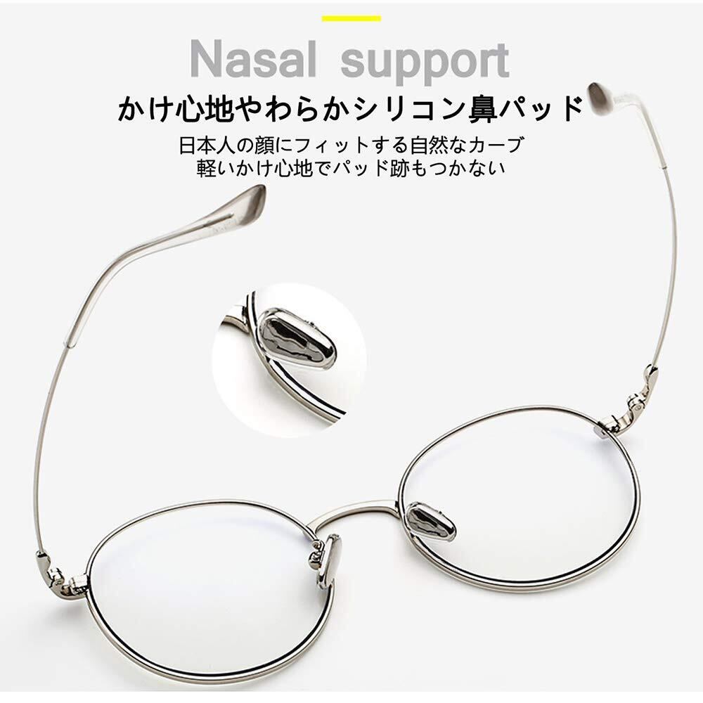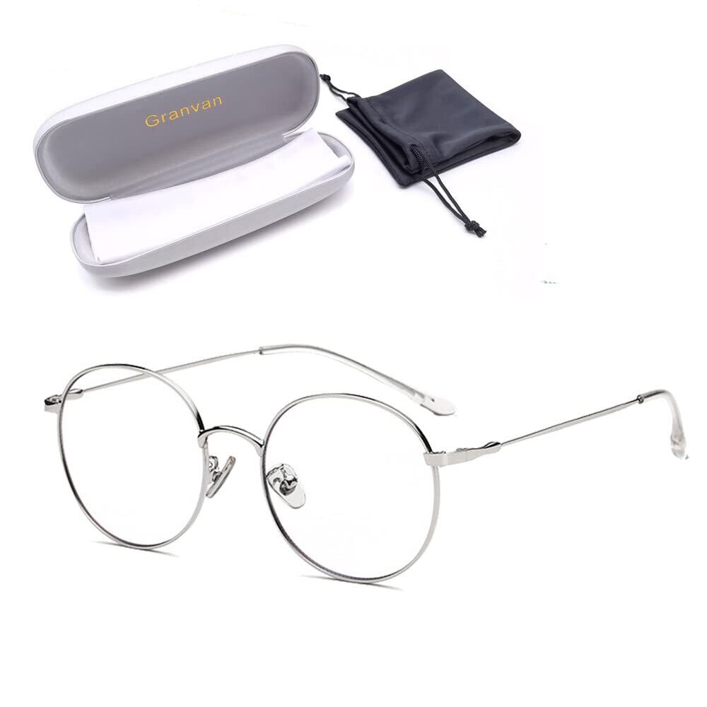 [Granvan] ブルーライトカット メガネ pcメガネ uvカット おしゃれ スマホ用 丸メガネ 伊達メガネ 超軽量 度なし レディース メンズ ユニセックス ケース付き (03 銀色(シルバー))