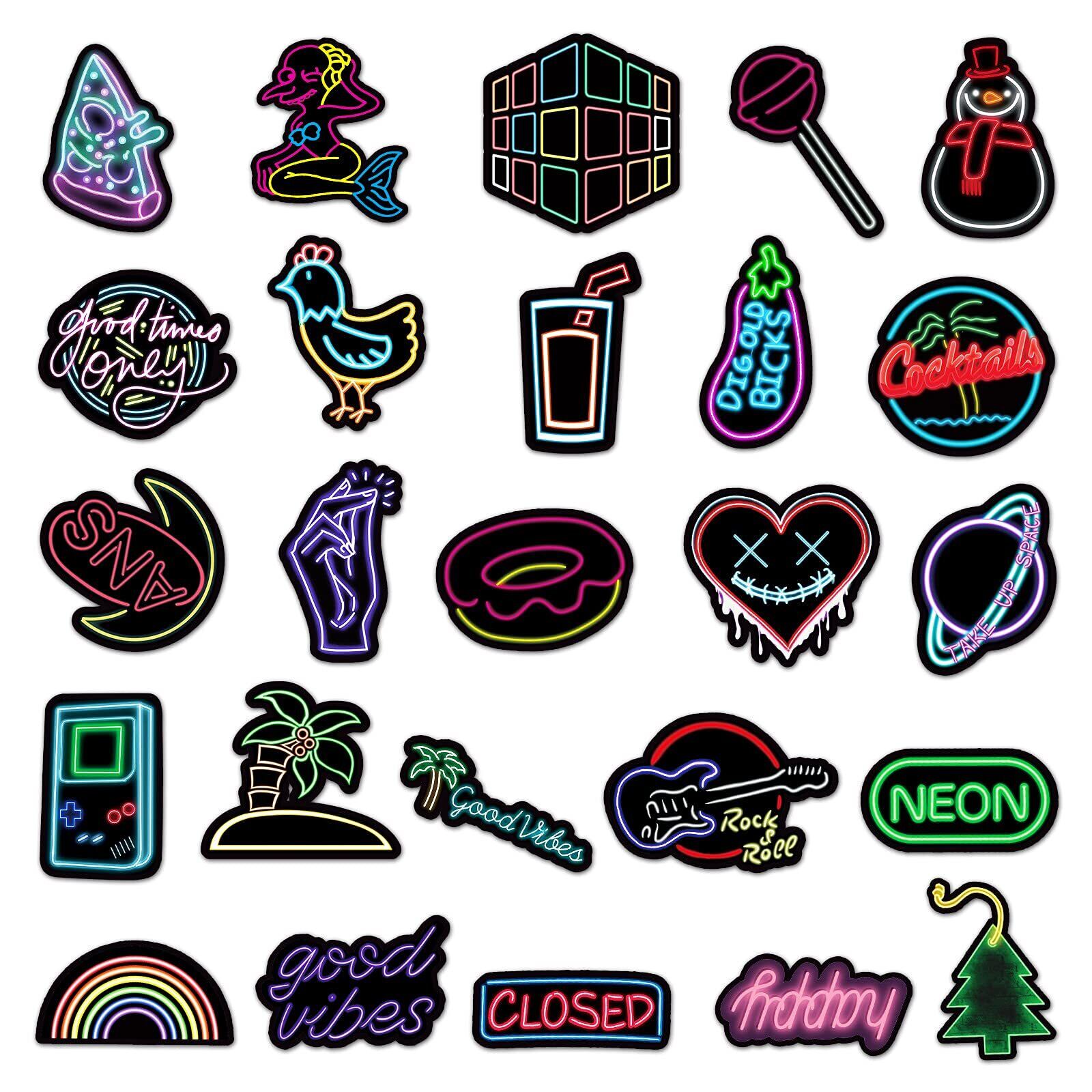 【特価商品】ステッカー シール 100枚 おしゃれ スマホ アニメ 防水 アウトドア バイク おもしろ かわいい スーツケース ヘルメット パソコン 携帯 スケートボード (ネオンライト) | わくわくSHOP
