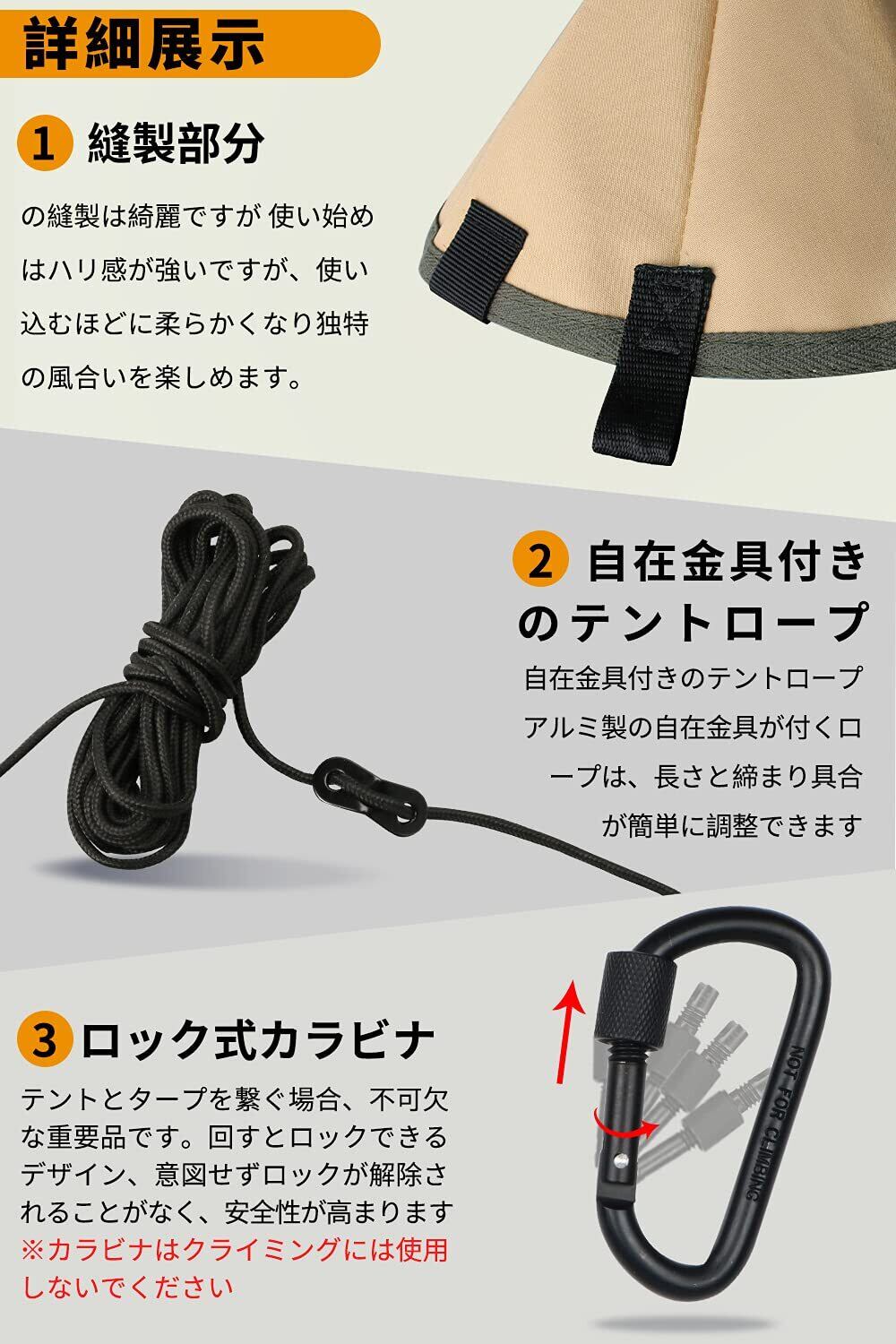 Keepjoy タープ連結 タープアダプター トンガリハット ワンポールテント タープ 接続用 三層構造 撥水加工 T/Cポリコットン カラビナ/ロープ付 ベージュ