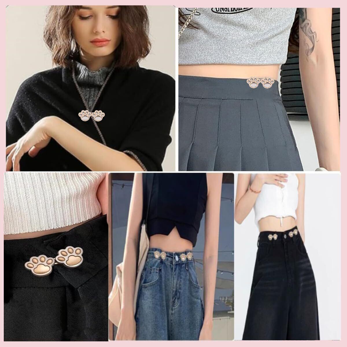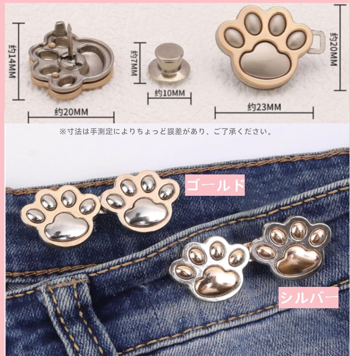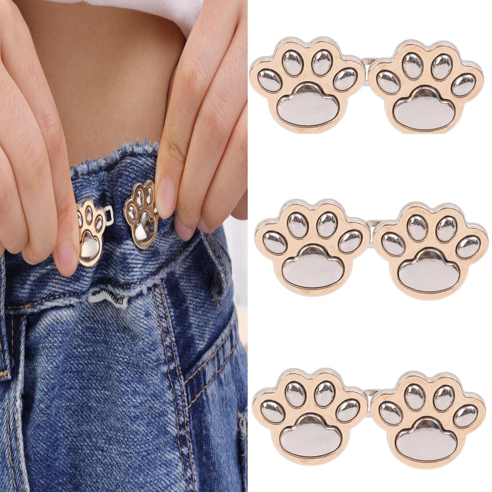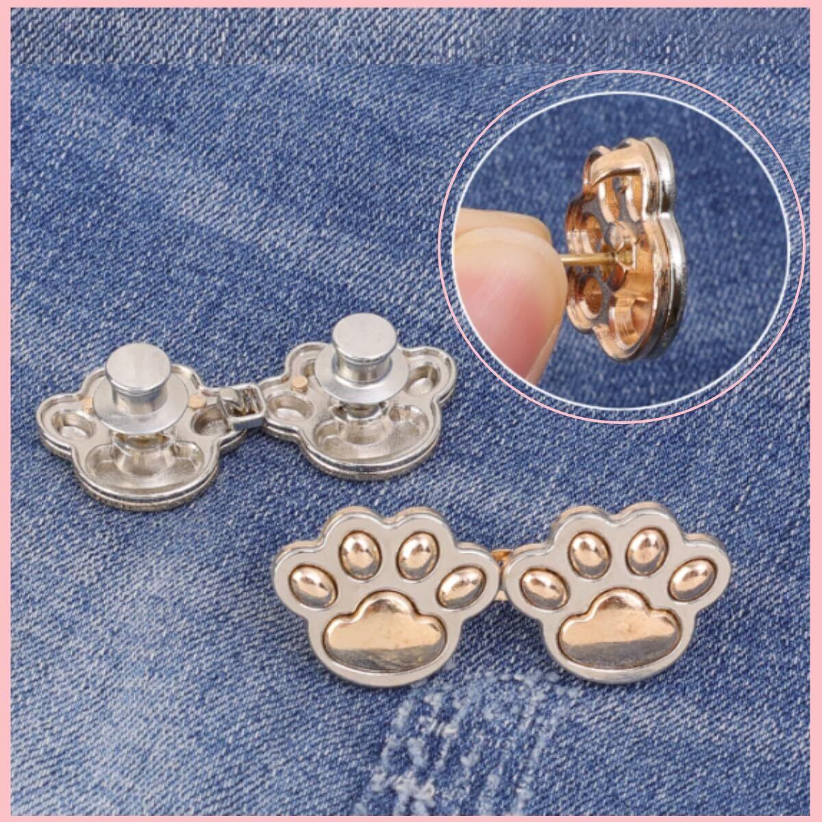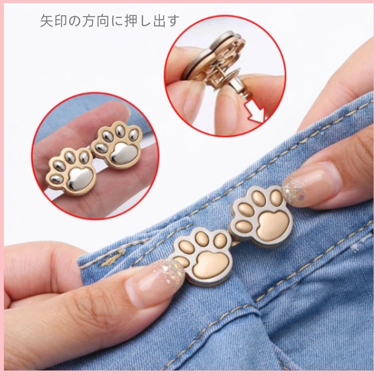 【パッケージ内容】ジーンズ用の猫の爪ボタンピン3個セット、ウエストバックルのセットは、2つのフックと4つのボタンで構成されています。