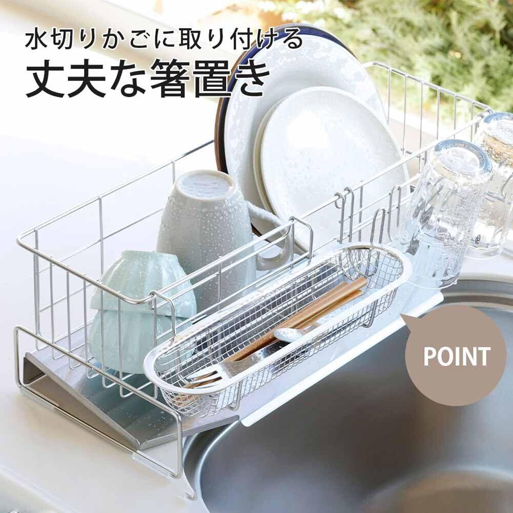 下村企販 水切りラック用 箸水切りザル 【日本製】 水切りかご 簡単取り付け 丈夫 小物用 スプーン フォーク カトラリーポケット 水切りかご シルバー ステンレス 燕三条 12651