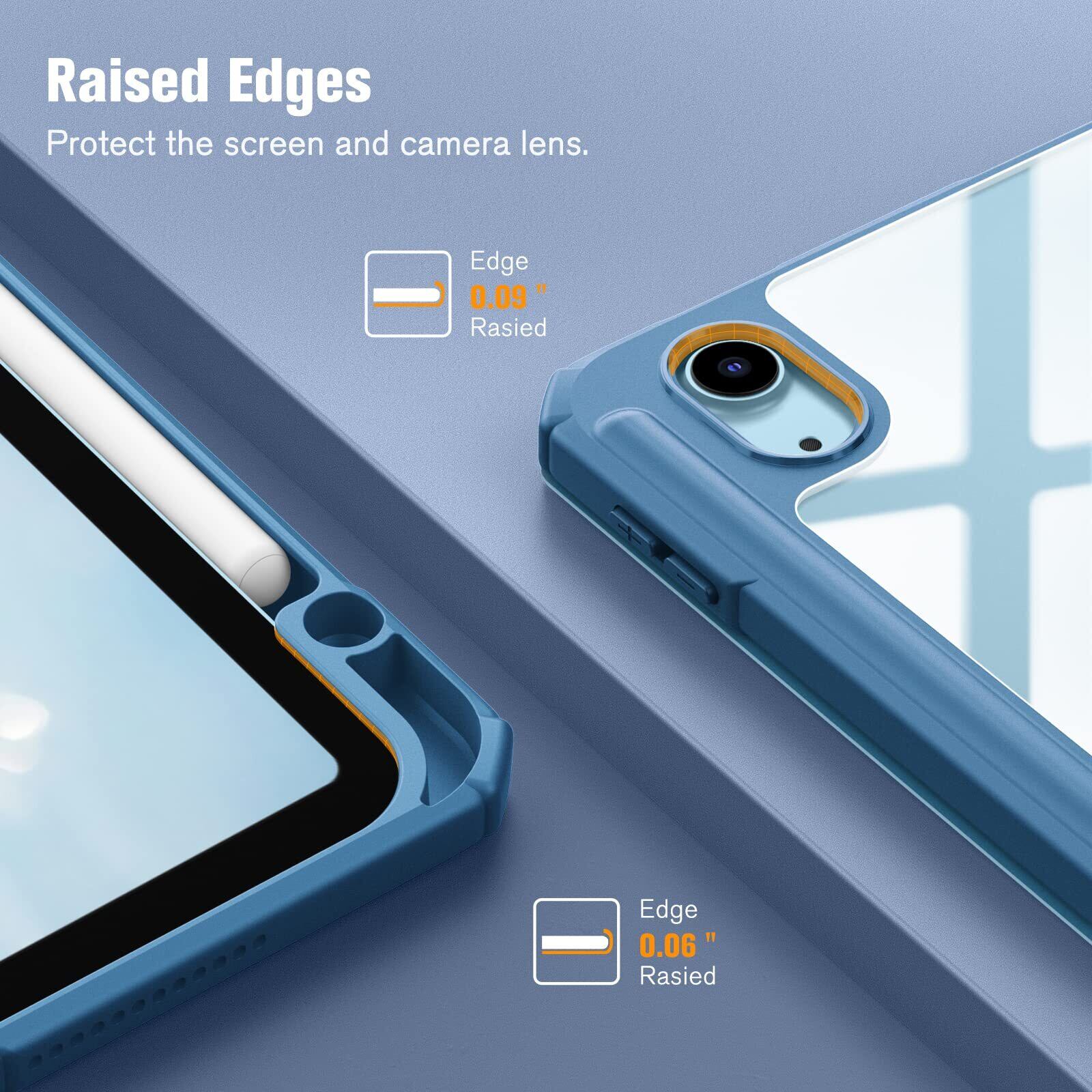 Fintie iPad Air 11インチ ケース M3 (2025 第7世代) / M2 (2024 第6世代) / Air 5/4 ケース 2022/2020 10.9 インチ 透明バックカバー Apple Pencil 収納可能 ワイヤレス充電対応 三つ折スタンド スリープ機能 軽量 薄型 傷つけ防止 PU合成レザー TPU(オーシャンブルー)