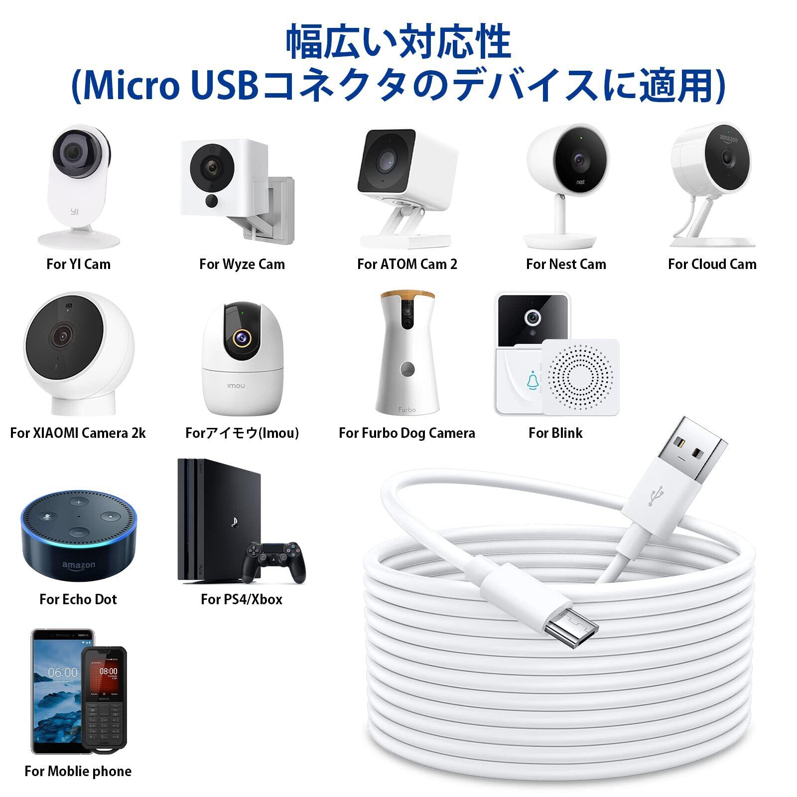 MACLE マイクロusb電源ケーブルは、対応XIAOMI/Mi 360°家庭用スマートカメラ 2K/2K Pro/C300、対応wansview ネットワークカメラ 1080p、対応Google Nest Cam Indoor、対応ATOM Cam 2、対応YESKAMO、対応Wyze Cam Pan、対応EZVIZ 防犯カメラ、対応アイモウ(Imou)、対応Furbo ドッグカメラ、対応Yi Camera、 対応Arlo Q、対応Netvue、対応Blink Mini、対応Xbox Oneコントローラーなど、他のMicroUSB端子を持つの室内 屋外防犯カメラ、周辺機器やナビ、デジカメ等の接続に電源供給使用可能です。
