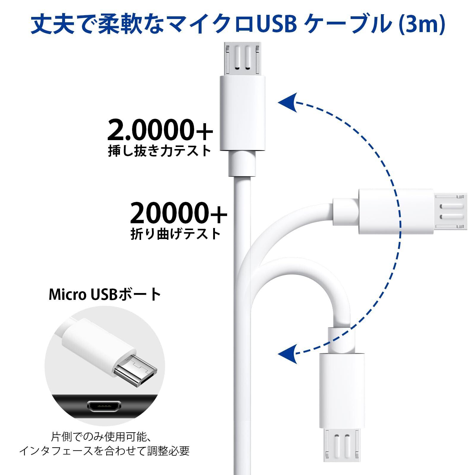 マイクロusbケーブル 3M micro usb 電源ケーブル 防犯監視カメラの給電用 USB A- micro B オスオス 対応ATOM Cam 2/YESKAMO/Wyze Cam Pan/Nest Cam/Xiaomi/IMOU/EZVIZ/Blink/Furboドッグカメラ対応、ドライブレコーダー コントローラー向けのusbケーブル 電源延長コード 白い