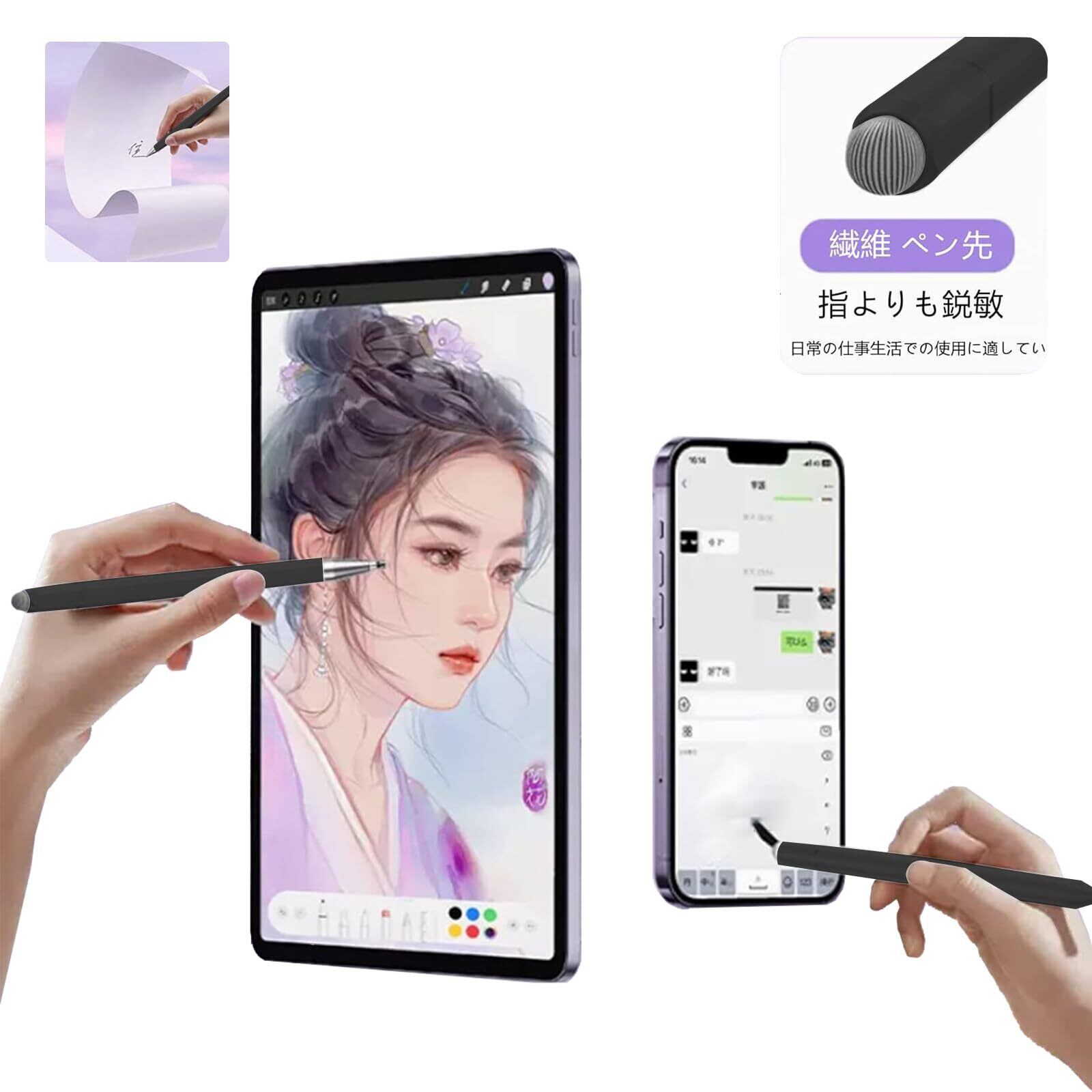 磁吸。タッチペン本体は磁気設計を採用しており、タブレットに簡単に吸着することができます、padと一緒に持ち運びに便利です、タッチペンの紛失防止。タッチペン スマホ用、充電不要、Bluetoothリンク不要、ペンカバーを開けて、使用できます。スマホ タッチペン、程よい重量で使いやすい。