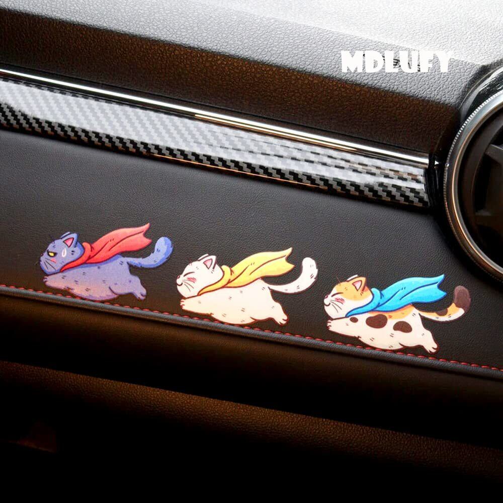 【数量限定】MDLUFY 猫すてっかー 車 カーステッカー 猫猫スーパーマンのイラスト 防水仕様 面白ステッカー 車やバイク キズ隠し 凹み隠しに かわいい 装飾 シール 取り付け簡単 汎用 車ドア 窓 ウォールステッカー (5匹の猫セット-S-左) | わくわくSHOP