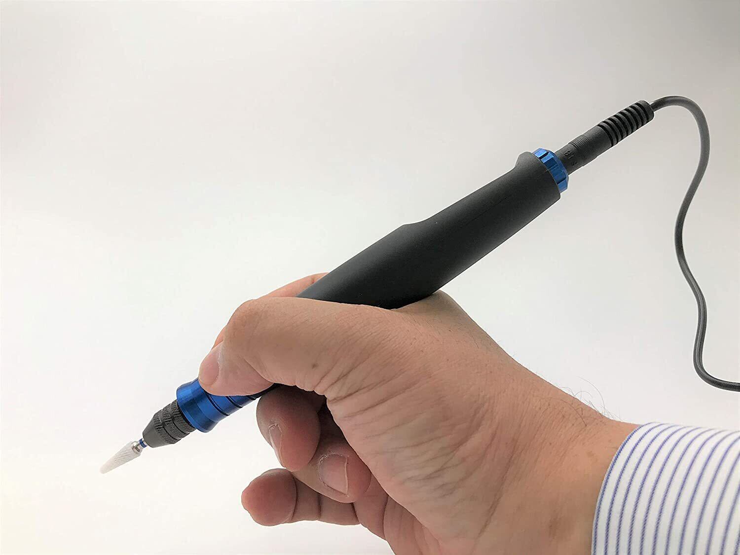 コンパクトで美しいボディながら、今までのハンディルーターに比べ圧倒的な高 トルクを実現、また高精度なチャックで回転精度が高く、どんな作業もストレスなく進めることができます。 アルティマオートトルクの6つの特徴 1. 低回転でも粘り強くしっかり回転する高トルクで、樹脂の切削研磨に強い 2. 高精度のチャックで回転精度が高く、繊細な作業も楽々 3. すぐに使える先端工具3 種類同梱(ジルコニアカッター、ダイヤモンドポイント、研磨砥石) 4. 全長約16cm、本体重量は約82g という小型軽量ボディ 5. 1,800 ~ 12,500 回転/分 無段階変速で多様な作業に適合 6. 精密ベアリング使用により高い静音性を実現