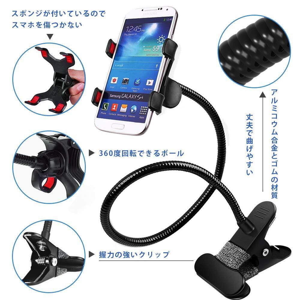 TOPOOMY スマホホルダークリップ式 フレキシブルアーム 充電ホルダー シリコーン、ゴム、アルミニウム 360度回転 自由調節 角度調整可能 TOPOOMY ブラック