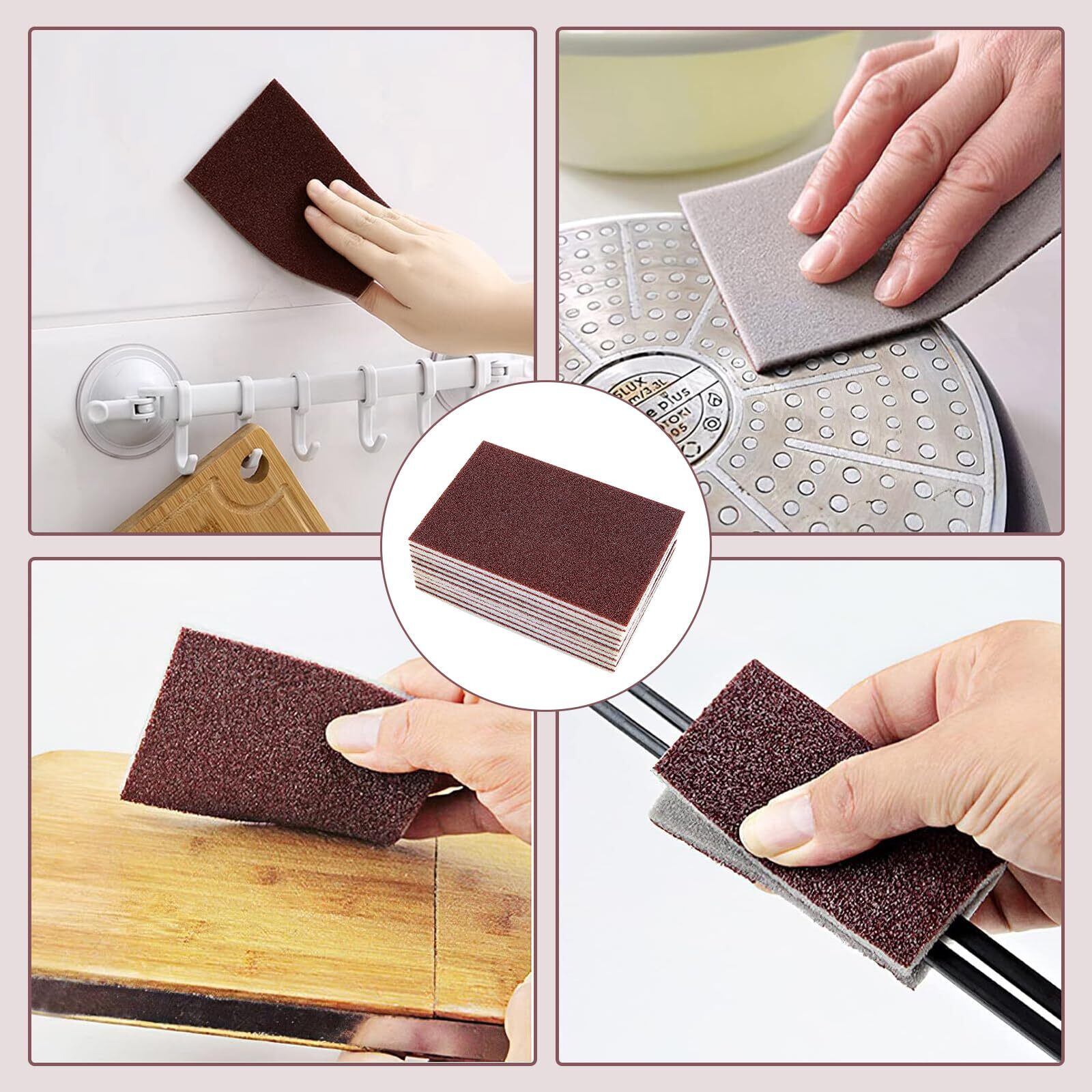 【高品質】この製品は、高度なナノ研磨粒子技術を採用し、表面には強力な焦げ落とし研磨粒子が施されています。この研磨仕上げパッドは、最も頑固な汚れも簡単に取り除きます。 クリーニングと仕上げ用の業務用研磨スポンジスクラブパッド。