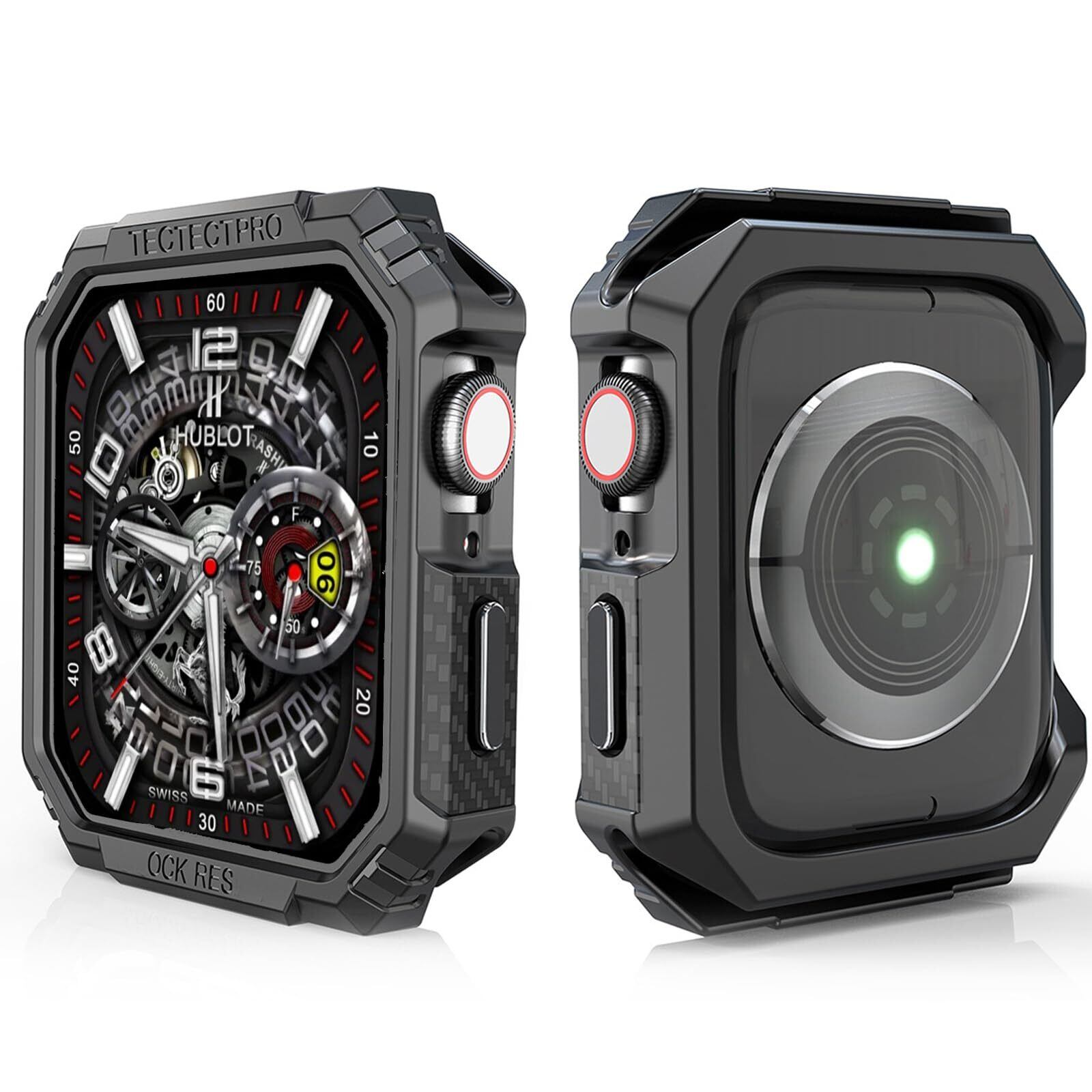 BUITFOU For Apple Watch ケース 49mm アップルウォッチ TPU 保護ケース Series ultra2/ultra(2023/2022)対応「メカニカルさ」カーボンろう付けパターン TPU素材 落下 衝撃 吸収 すり傷 防止 耐衝撃 米軍 MIL規格(49mm,ブラック)