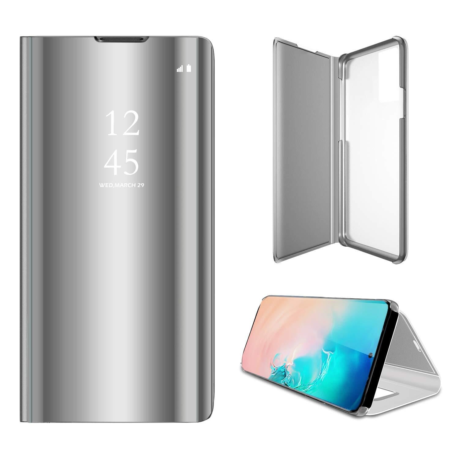 【新着商品】携帯電話ケース Galaxy S21 ミラー メッキ 透明 窓 薄型 キラキラ 可愛い 面白い 手帳型 PUレザー スタンド機能 カバー おしゃれ キャラクター レンズ保護 落下防止 マグネット 財布型 スマホ 全面保護 指紋防止 磁気防止 かわいい 人気 耐衝撃 ワイヤレス充電 beautycatcher - 銀 | わくわくSHOP