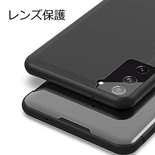 携帯電話ケース Galaxy S21 ミラー メッキ 透明 窓 薄型 キラキラ 可愛い 面白い 手帳型 PUレザー スタンド機能 カバー おしゃれ キャラクター レンズ保護 落下防止 マグネット 財布型 スマホ 全面保護 指紋防止 磁気防止 かわいい 人気 耐衝撃 ワイヤレス充電 beautycatcher - 銀