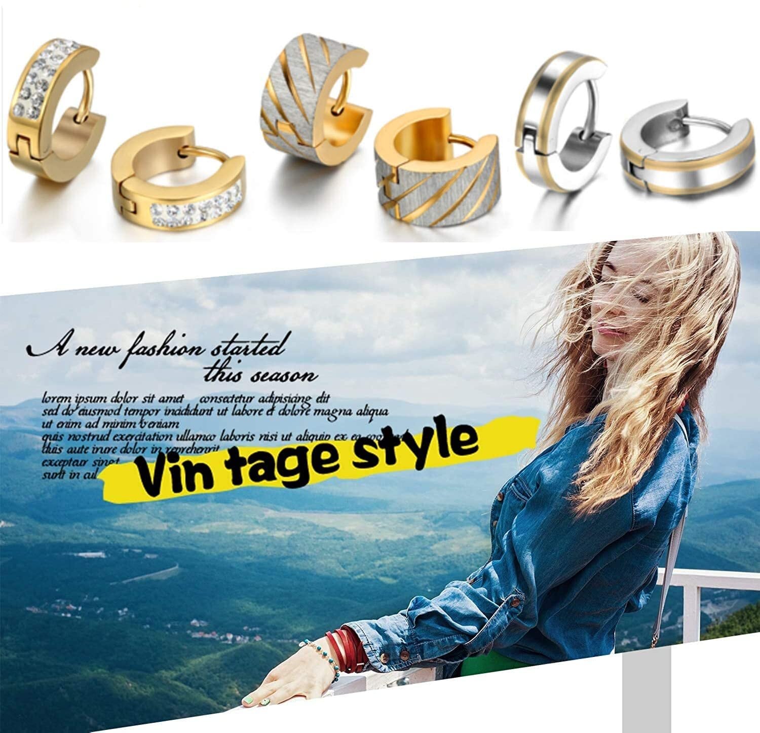 Aroncent リングピアス メンズ ステンレス (3ペア6点セット) フープピアス メンズ&レディース ボディピアス ゴールド シルバー