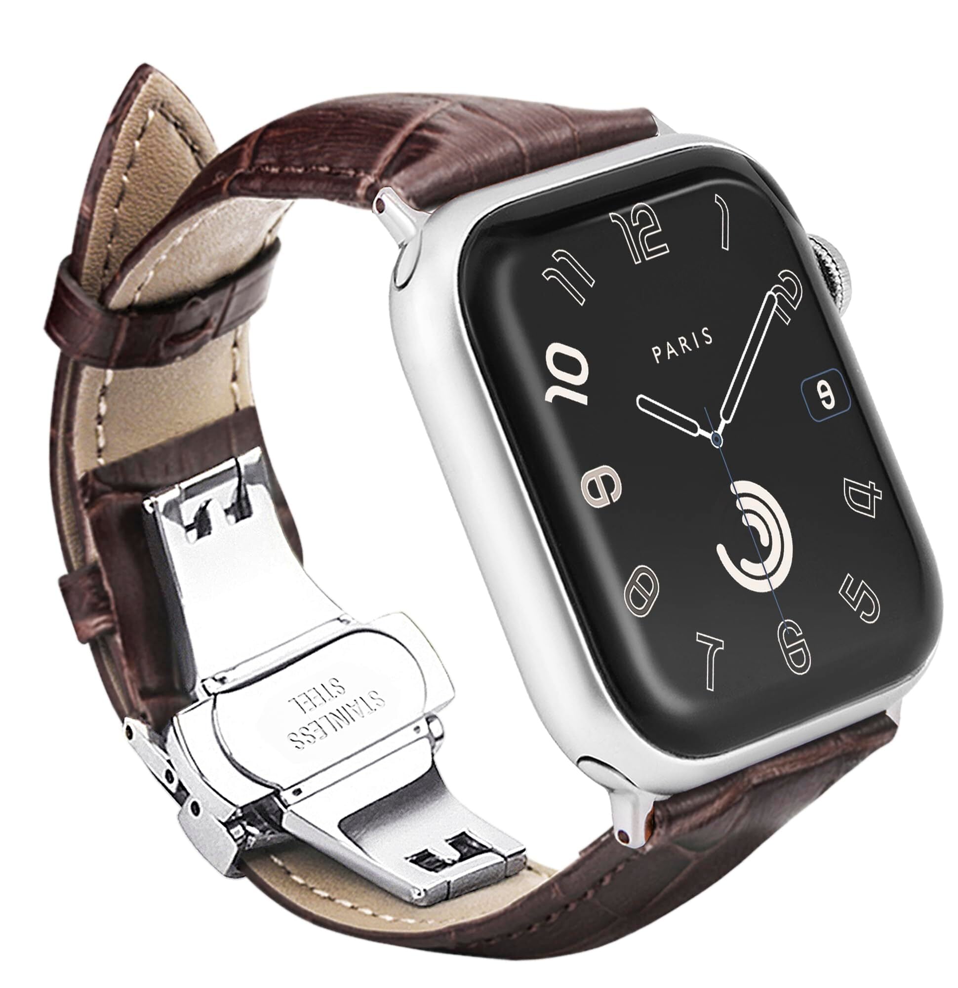 【新春セール】[Sea Sha]コンパチブル apple watch バンド44MM 45MM 46MM 49MM本革/ビジネス用 アップルウォッチ ベルト46mm プッシュ式 Dバックル 手作りApple Watch Ultra2/1,Apple Watch Series10/9/8/7/6/SE/5/ 4に対応(44mm/45mm/46mm/49mm,ブラウン) | わくわくSHOP