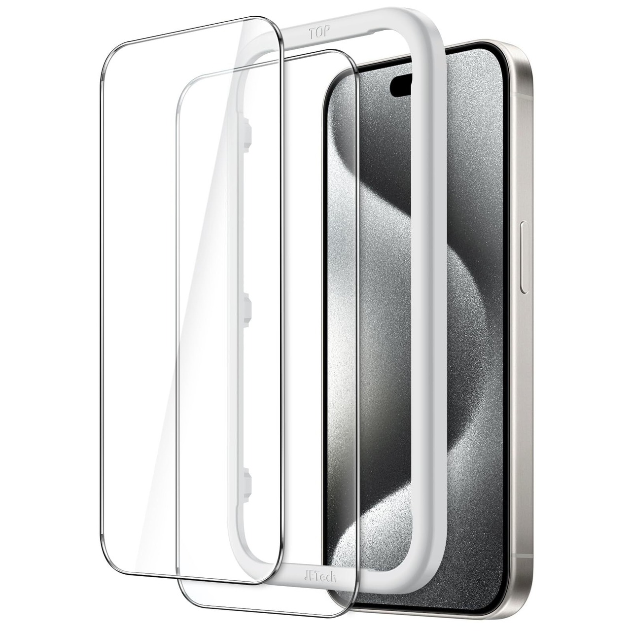 JETech iPhone 15 Pro(6.1インチ用) 保護フィルム 気泡なし 強化ガラスフィルム ガイド枠付き ケースに干渉なし HDクリア 2枚セット