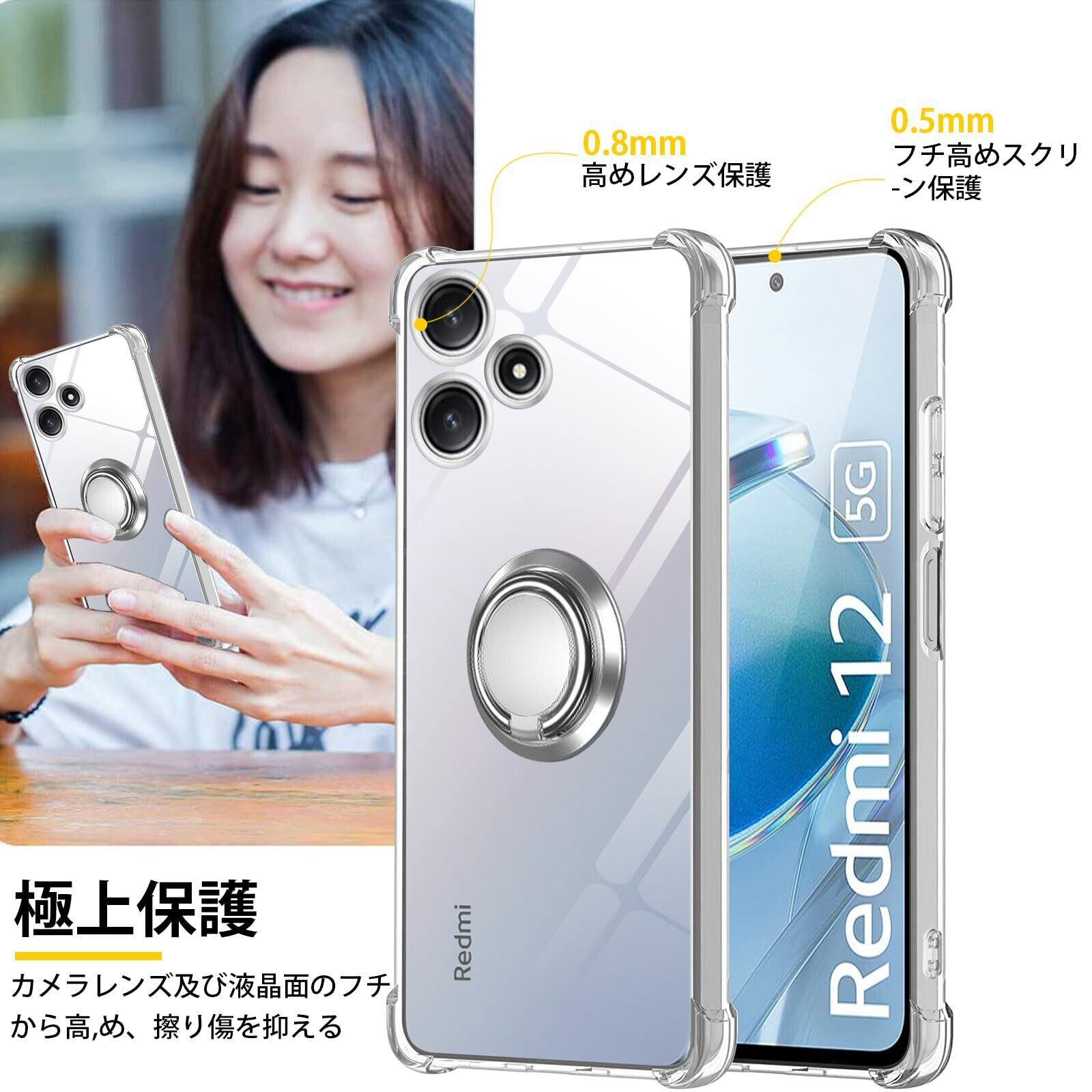 Redmi 12 5G ケース リング TPU 薄型 軽量シリコン 耐衝撃 指紋防止 車載ホルダー対応 防塵 一体型 人気 携帯カバー(クリア)