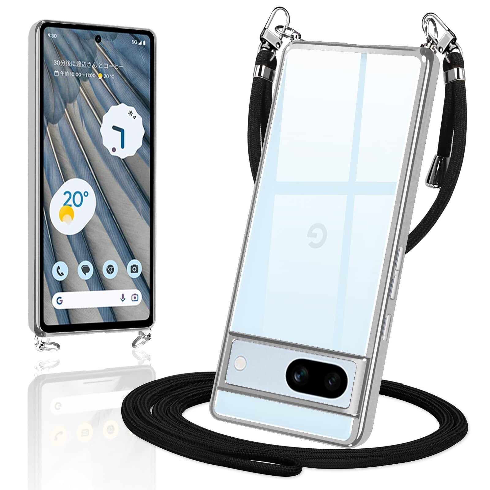 Google Pixel 7a ケース クリア ショルダー TPU ピクセル7a カバー スマホケース 透明 薄型 肩掛け 首掛け 斜めかけケース 耐衝撃 シリコン(シルバー)
