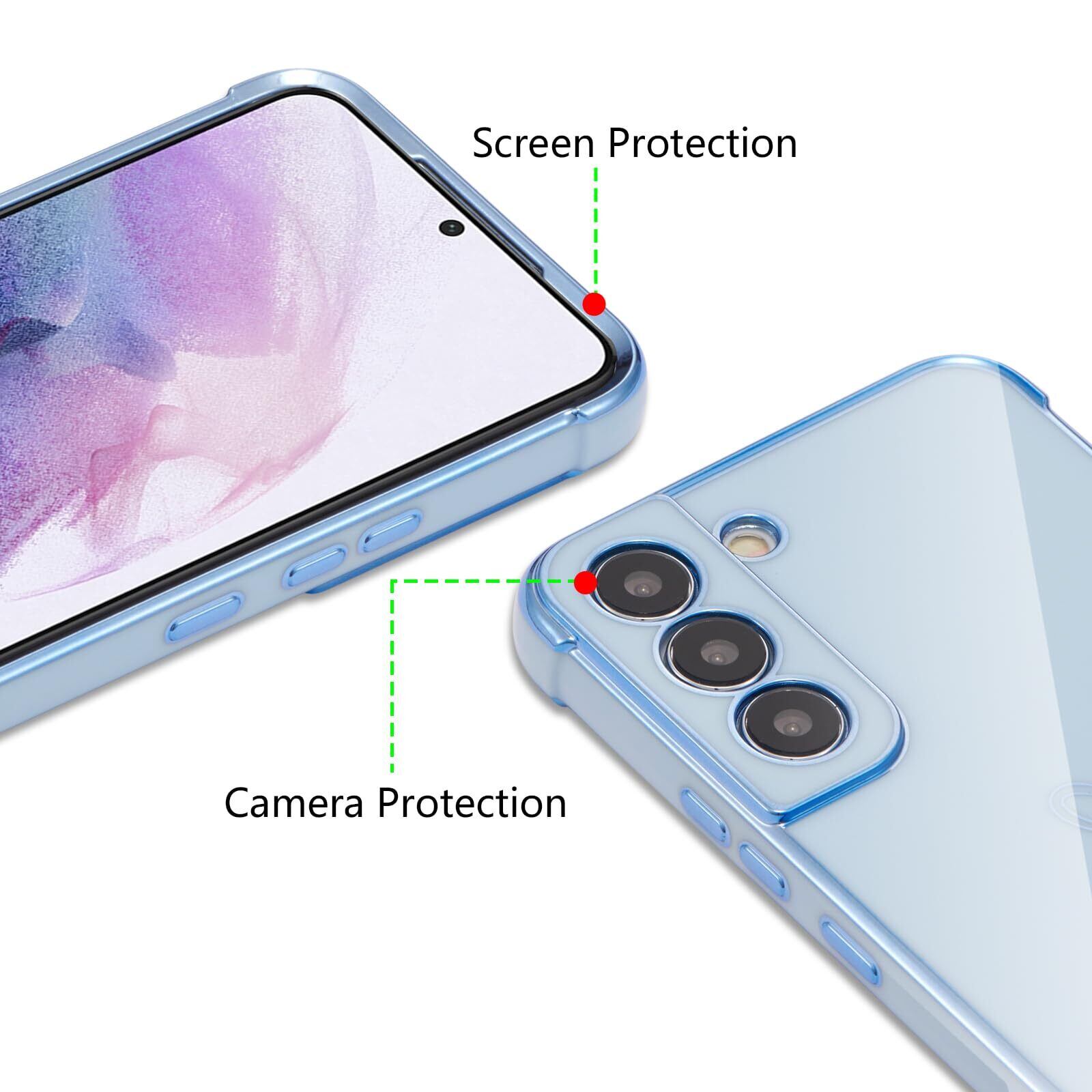 ZTOFERA Samsung Galaxy S21 用 ハートケース 柔軟な TPU シリコン メッキ加工 ソフト 軽量 耐衝撃 おしゃれ 韓国 可愛い サムスン ギャラクシー S21 ケース 携帯カバー 女性 心パターン スマホケース ワイヤレス充電対応 (シエラブルー)