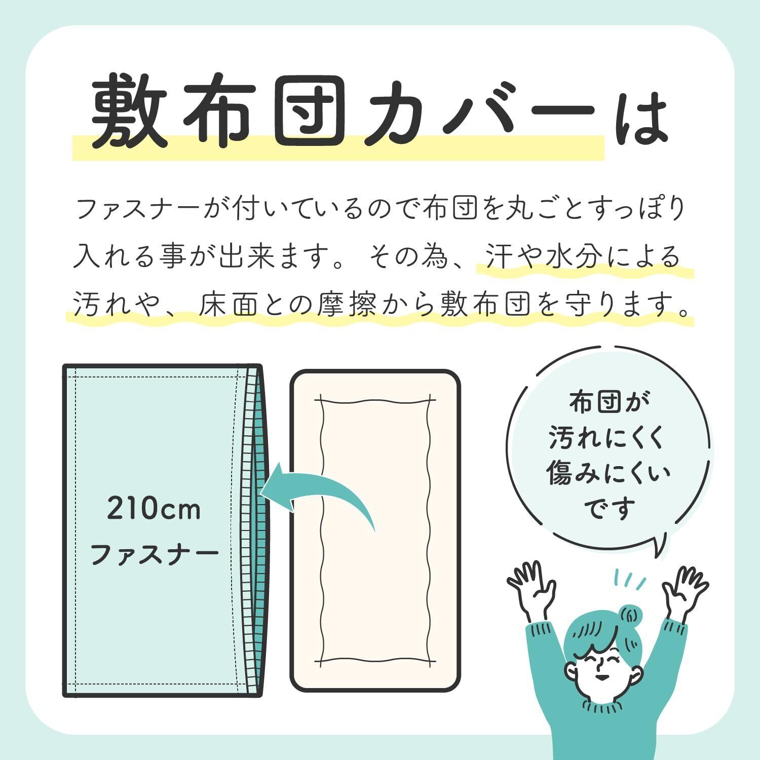 100×210㎝用の敷布団用カバー。出し入れしやすい 210cmファスナー使用。
