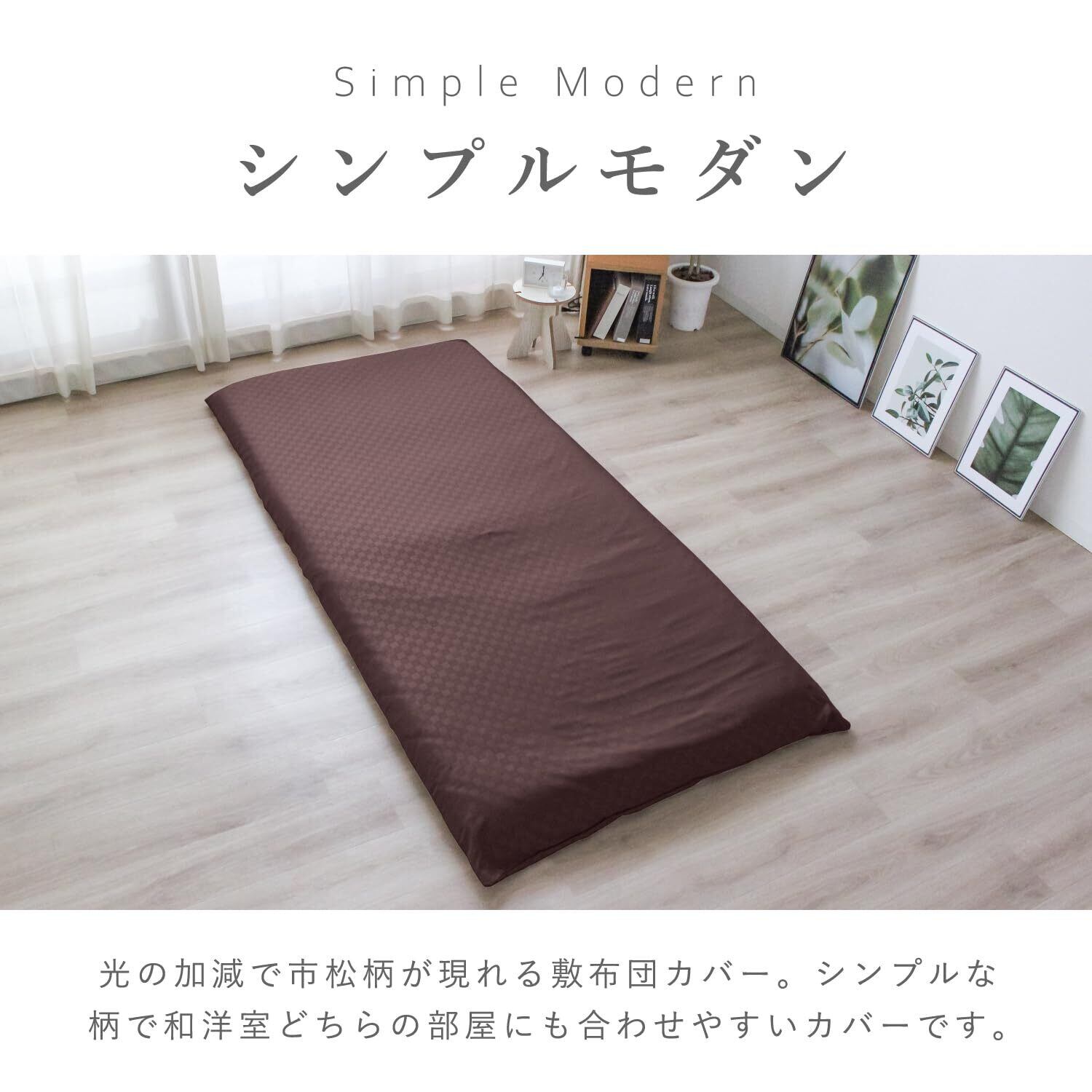 メリーナイト 敷き布団カバー 市松柄 ブラウン シングルロング 約105×215cm 光沢感 和モダン 速乾 シワになりにくい 洗える PE13101-93