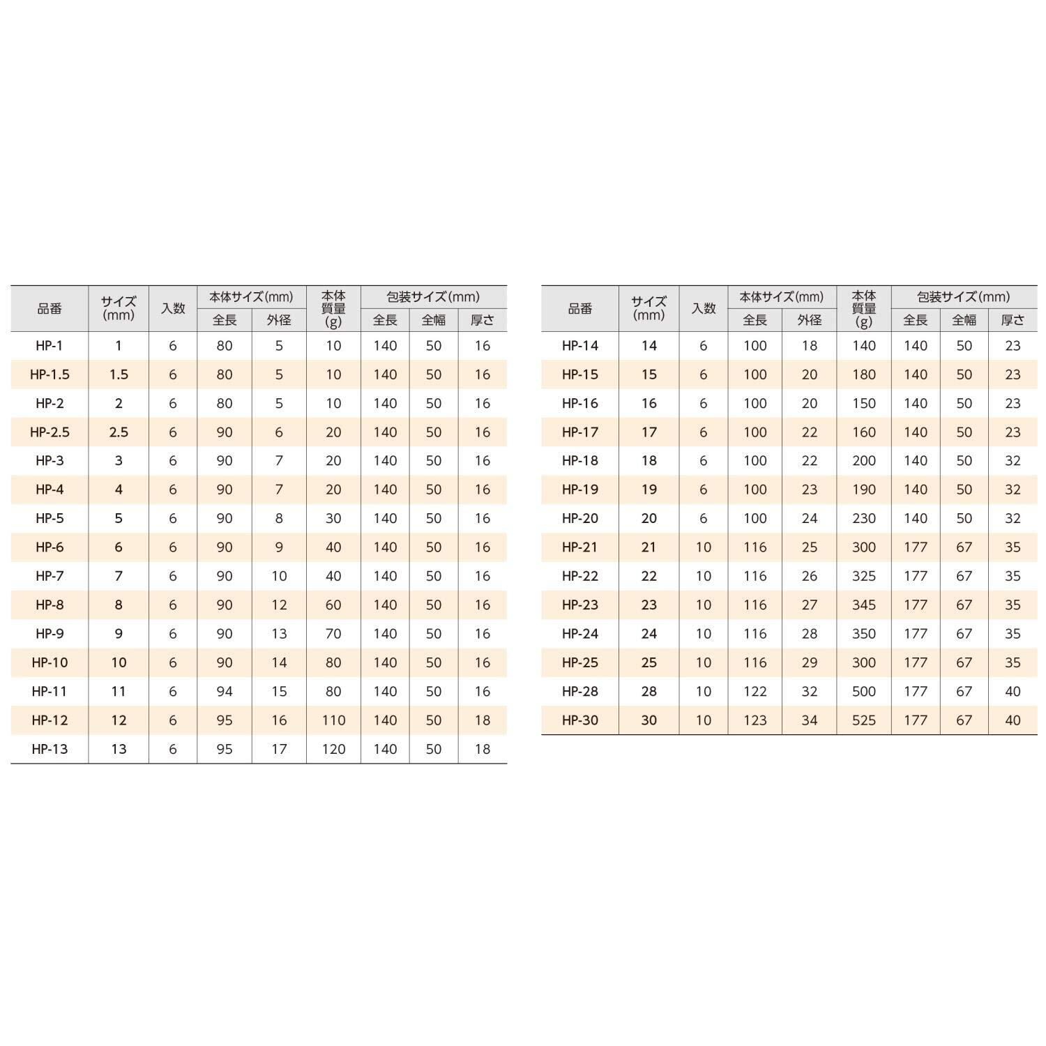 1-30mmまでのサイズバリエーションがあります。