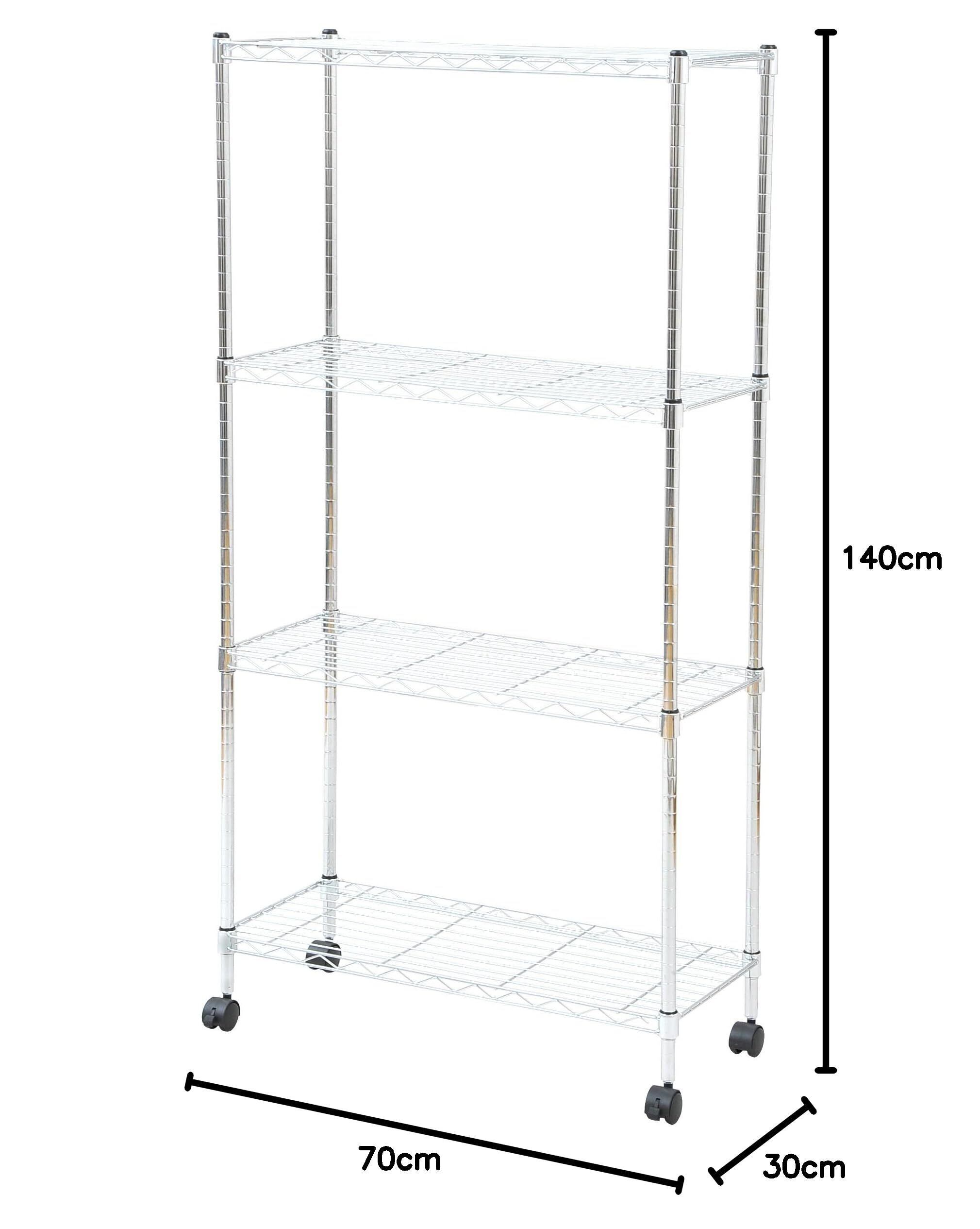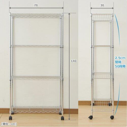 山善(YAMAZEN) スリムメタルシェルフ クロムシルバー (幅70棚) キャスター付き 4段 RS-14734CJH(CH)