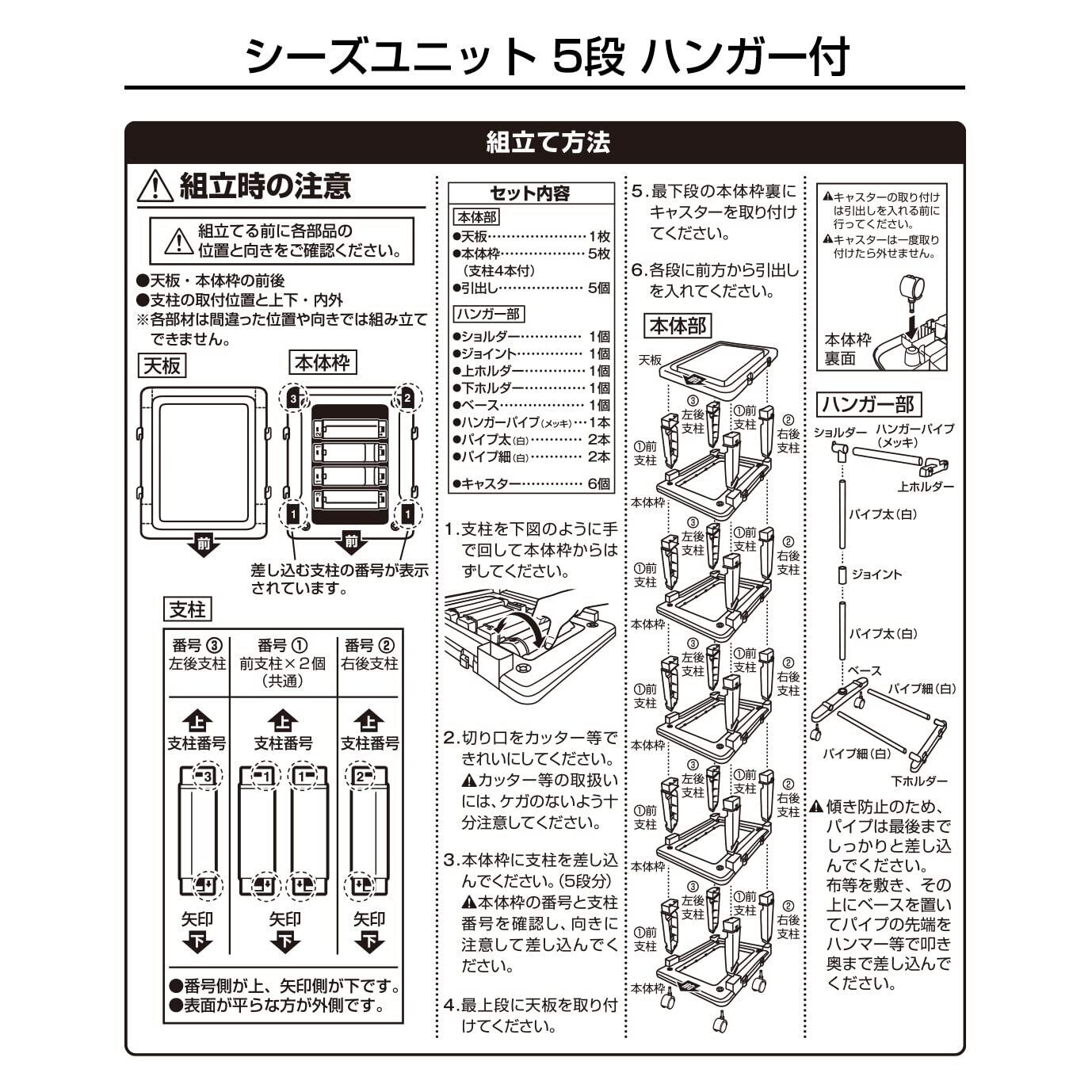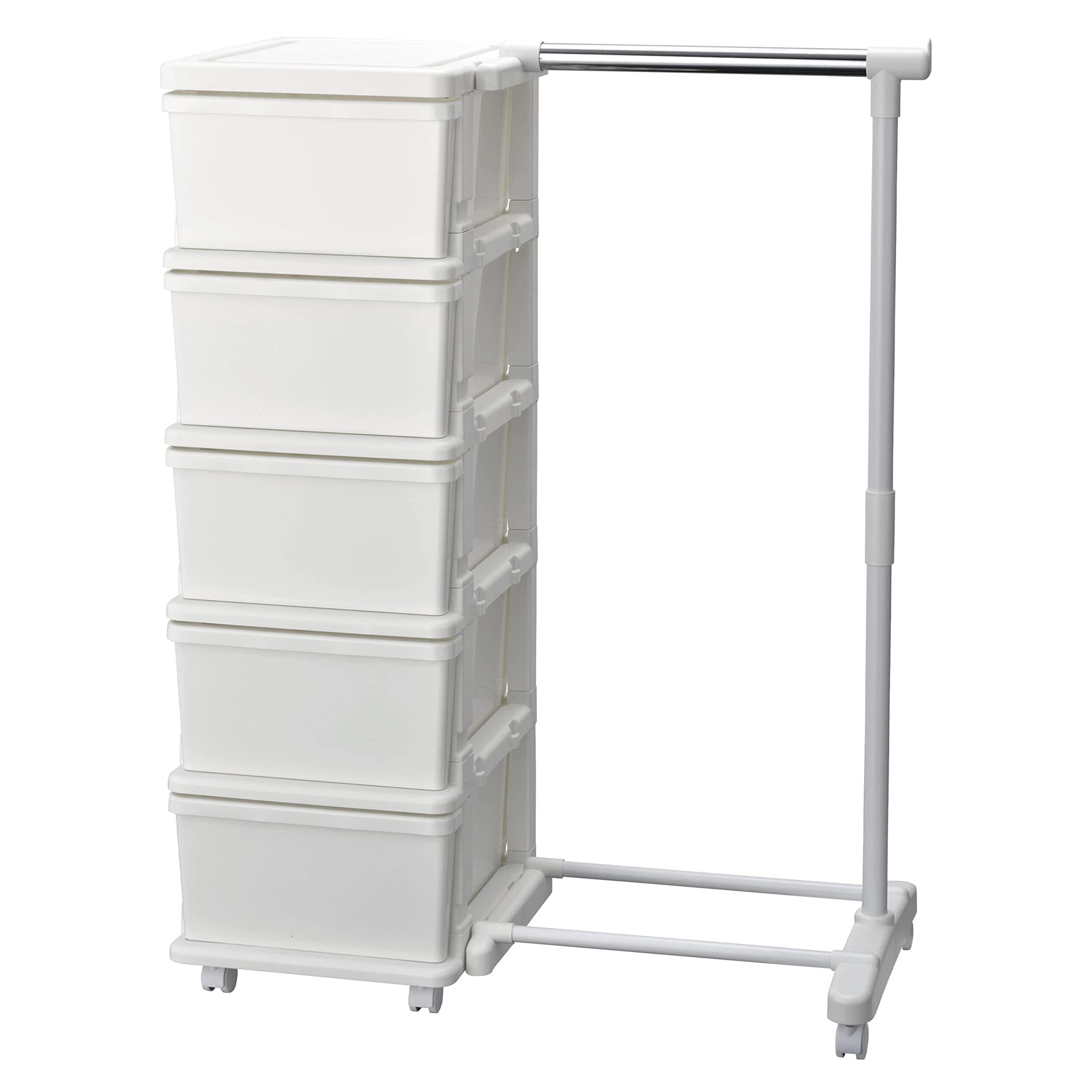 JEJアステージ 収納ケース シーズユニット5段ハンガー付 ホワイト 簡単組立 日本製 幅83.5×奥行42×高さ103.3/108.3cm 2個セット