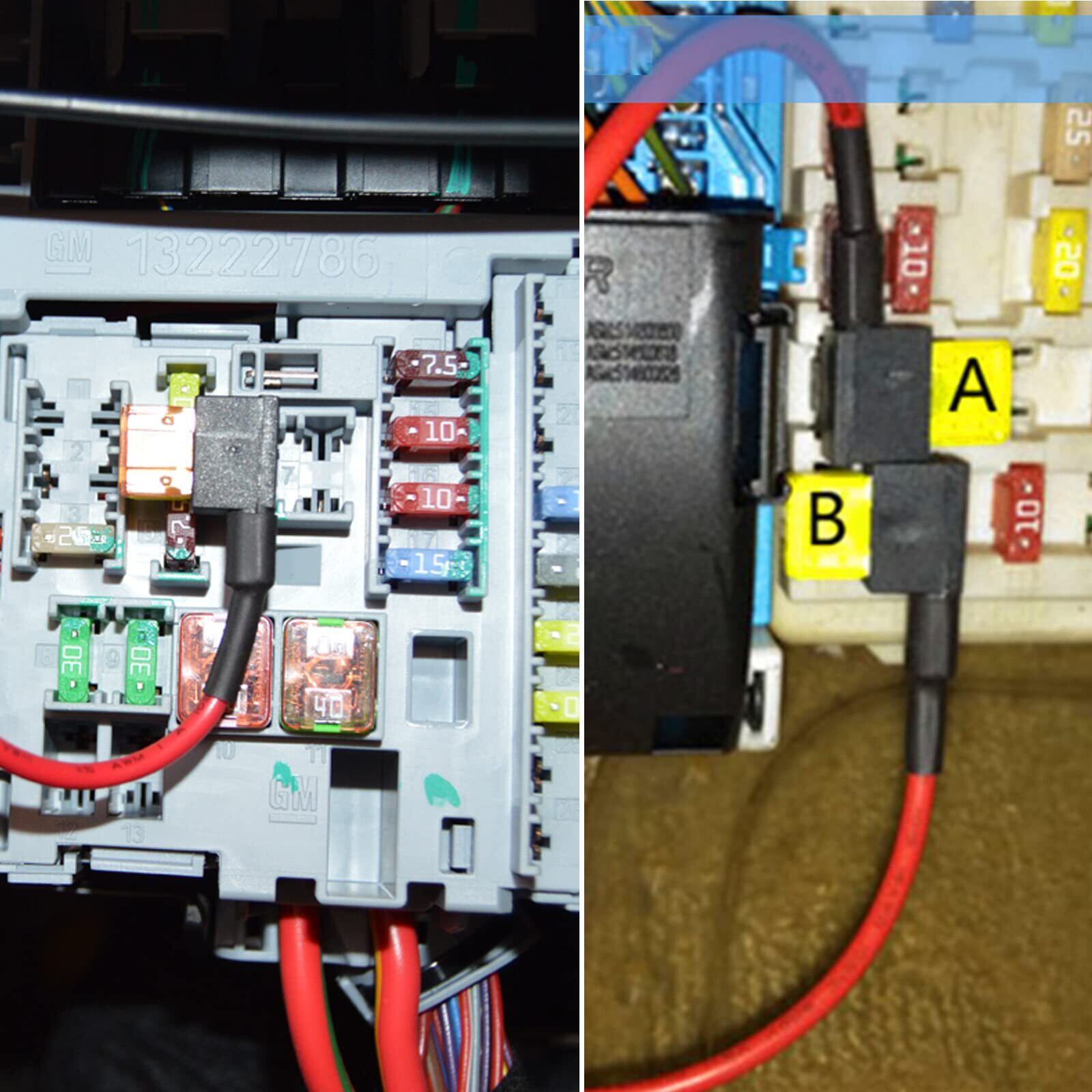 【取り付け簡単】1.既存のヒューズをヒューズボックスから取り外し、そのヒューズをヒューズタップの下部スロットに挿入するだけです。 2.新しいアクセサリに適したヒューズを上部のスロットに挿入します。 3.新しい活線をヒューズタップの透明なバット端子に圧着します。