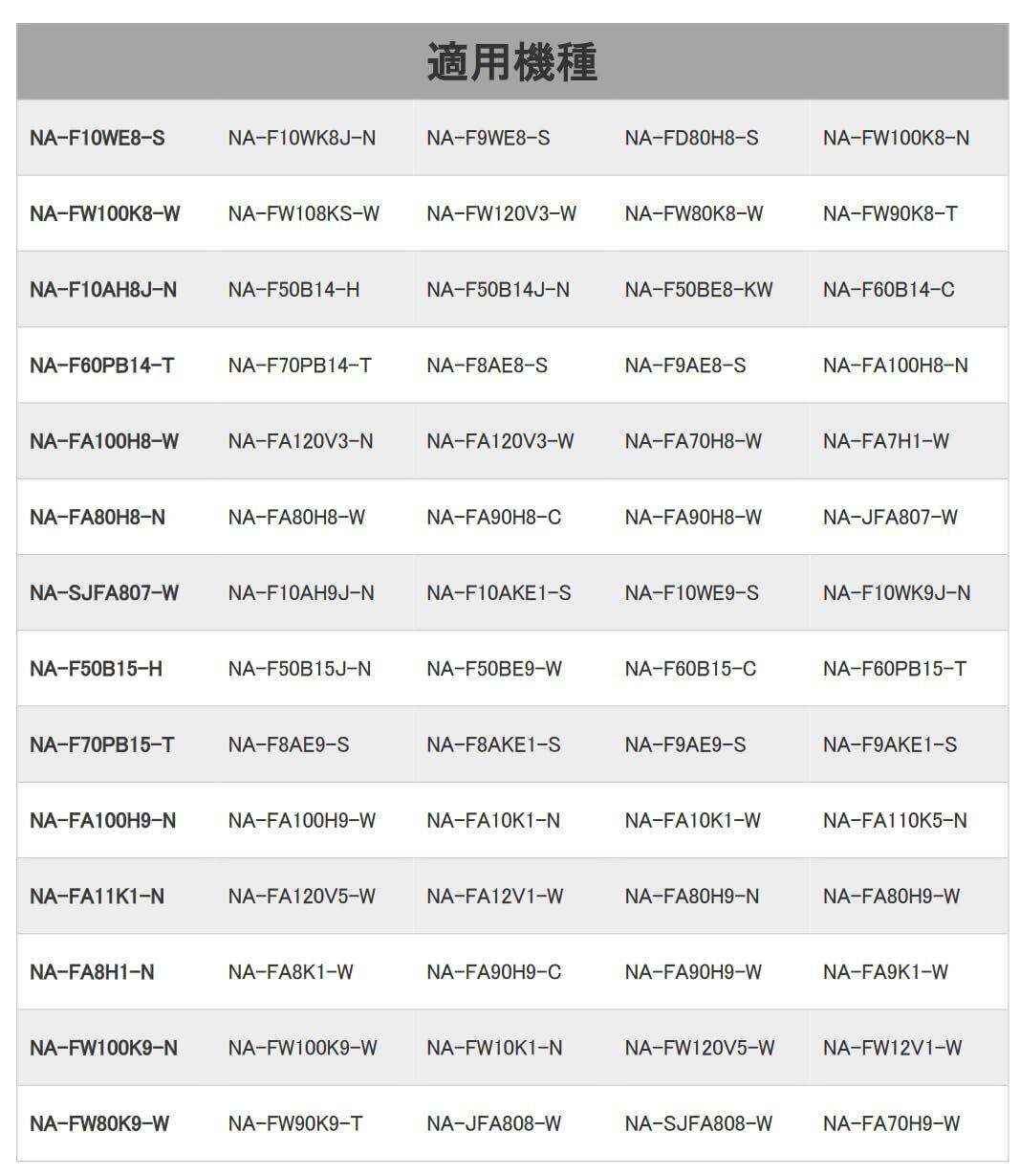適用機種:NA-F10WE8-S/NA-F10WK8J-N/NA-F9WE8-S/NA-FD80H8-S/NA-FW100K8-N/NA-FW100K8-W/NA-FW108KS-W/NA-FW120V3-W/NA-FW80K8-W/NA-FW90K8-T/NA-F10AH8J-N/NA-F50B14-H/NA-F50B14J-N/NA-F50BE8-KW/NA-F60B14-C/NA-F60PB14-T/NA-F70PB14-T/NA-F8AE8-S/NA-F9AE8-S/NA-FA100H8-N/NA-FA100H8-W/NA-FA120V3-N/NA-FA120V3-W