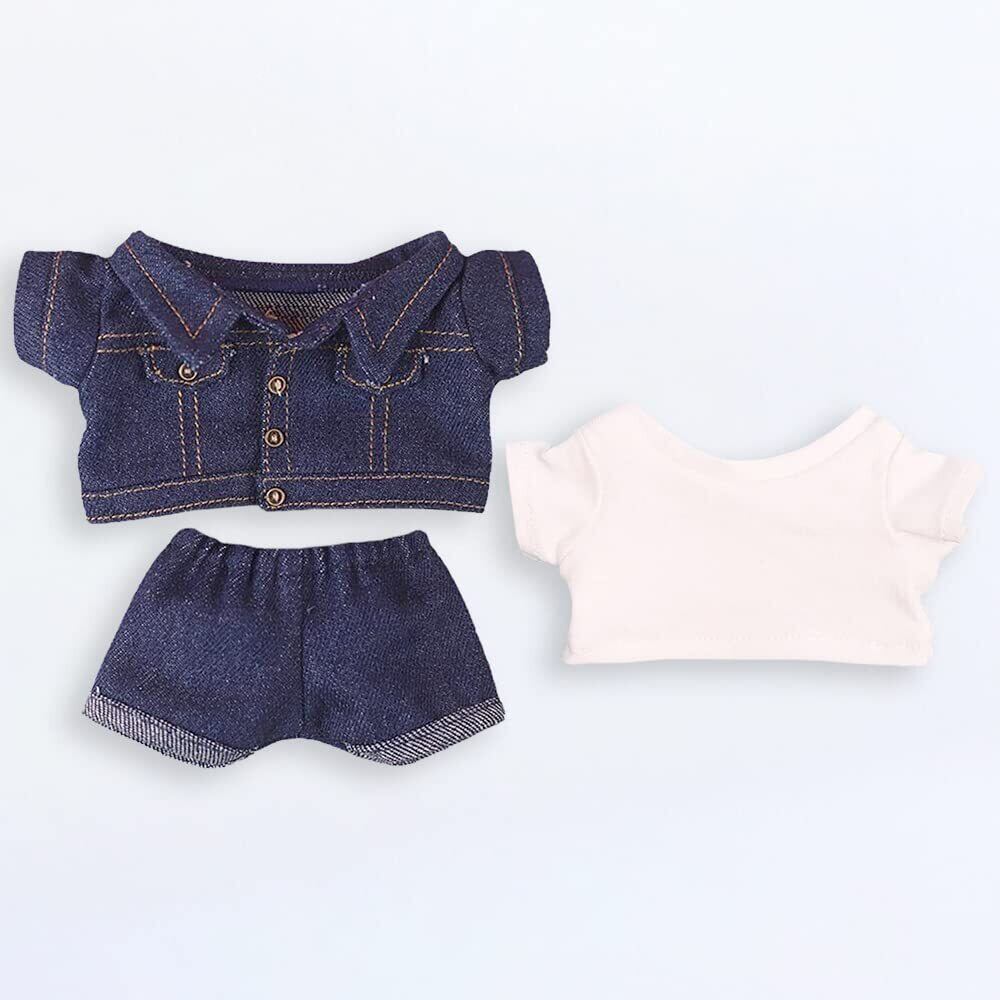 niannyyhouse 15cm ぬいぐるみ 服 ジーンズジャケット 白いTシャツ 綿人形の服 着せ替え (navy blue)