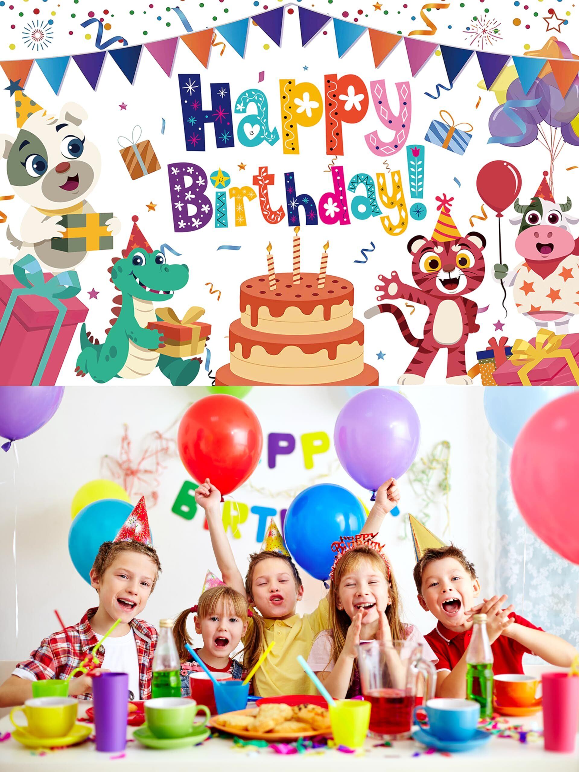 【在庫セール】動物 ケーキ バースデー タペストリー 動物 ケーキ 誕生日 飾り付け タペストリー おしゃれ 誕生日 壁掛け 写真背景 アニマル ケーキ Happy Birthday パーティー フォトポスター 子供 おうちスタジオ 180x120cm | わくわくSHOP