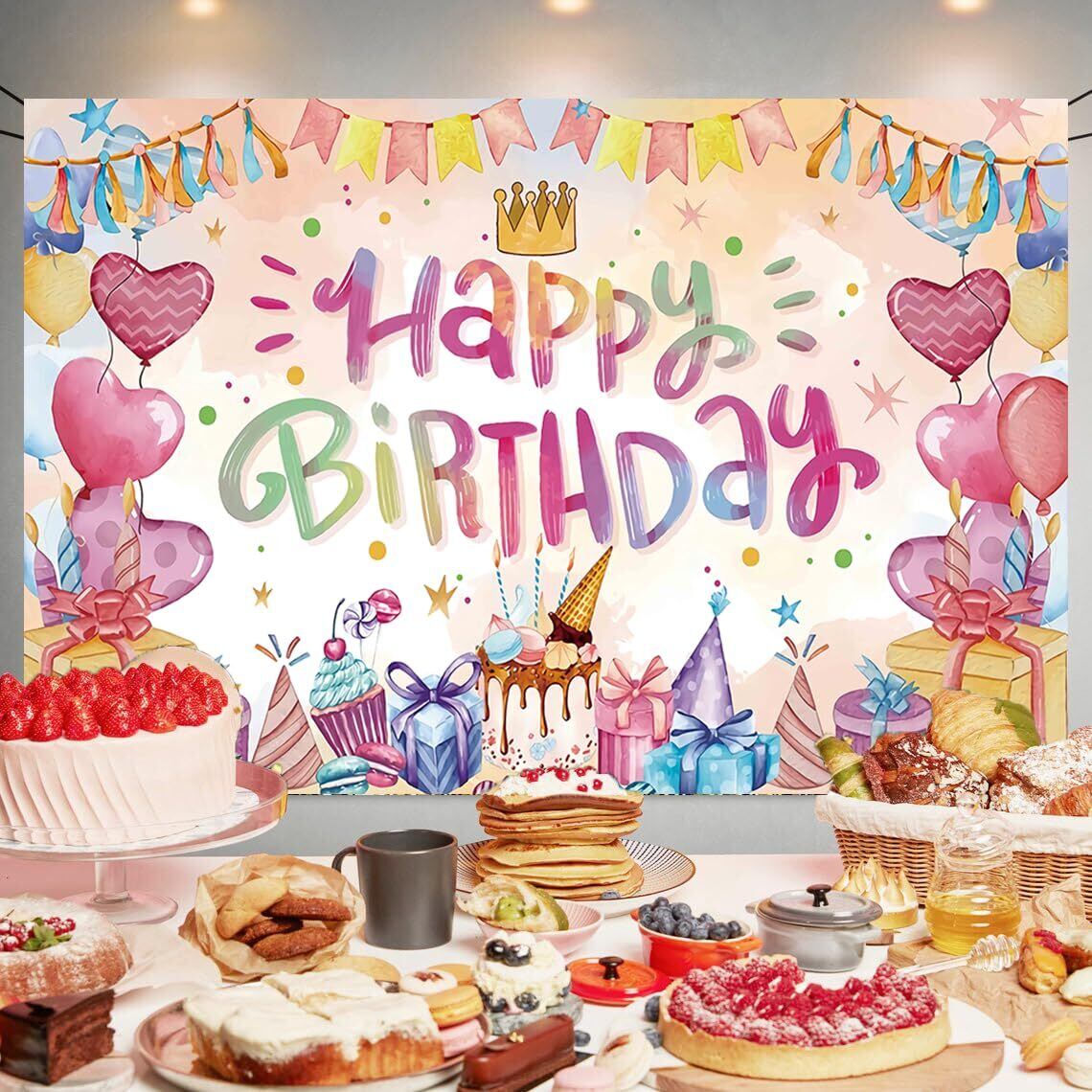 【特価商品】ハート バースデー タペストリー ハート 誕生日 飾り付け タペストリー おしゃれ 誕生日 壁掛け 写真背景 ハート Happy Birthday パーティー フォトポスター 女の子 おうちスタジオ 180x120cm | わくわくSHOP