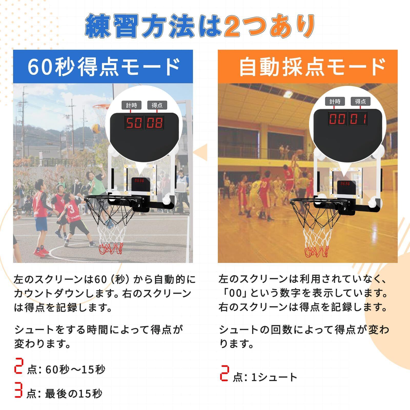 【2つのゲームモード】室内用バスケットゴールには、「自動カウントアップ」と「60秒得点モード」の2種類のゲームモードを搭載しています。プレイスタイルに合わせて自由に楽しめます。
