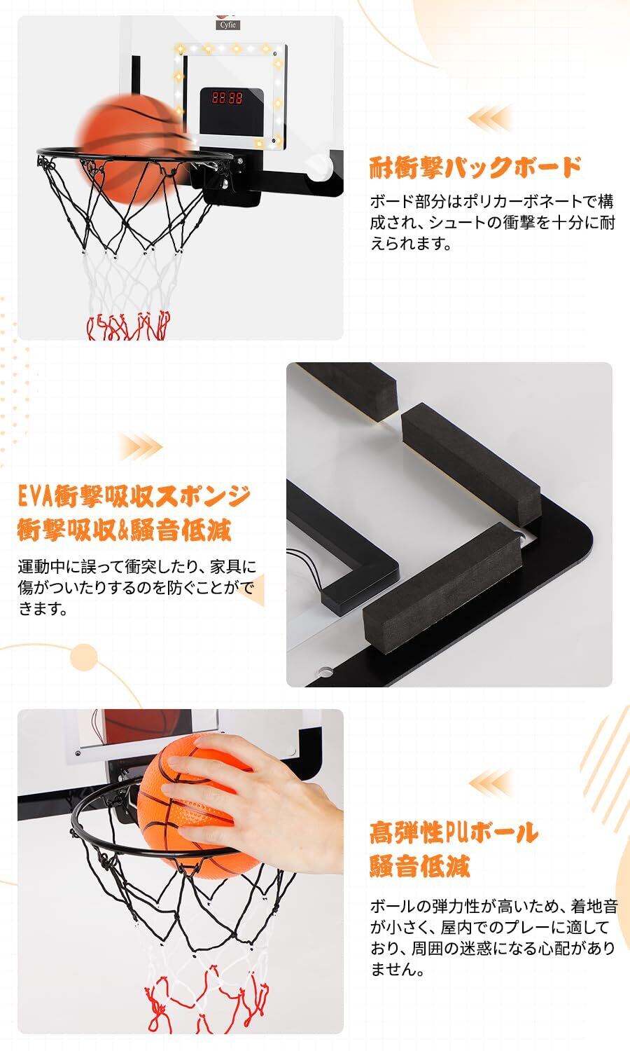 【2022最新】CYFIE バスケットゴール 室内 屋外 壁掛け 吸盤式 ドア掛け式 バスケゴール 子供用 おもちゃ 自動採点 効果音 静音可能 ミニバスケットゴール LEDライト付き 2つゲームモード 男の子 女の子 室内遊具 誕生日 プレゼント クリスマス ギフト 40*30cm