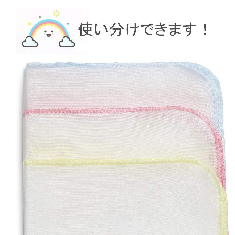 セット内容:ガーゼハンカチ 24枚。サイズ:30×30cm。縁の色:ピンク(8枚)、クリーム(8枚)、ブルー(8枚)。素材:綿100%。中国製。一枚一枚検品済み。※商品が到着30日以内返品、交換が出来ます。