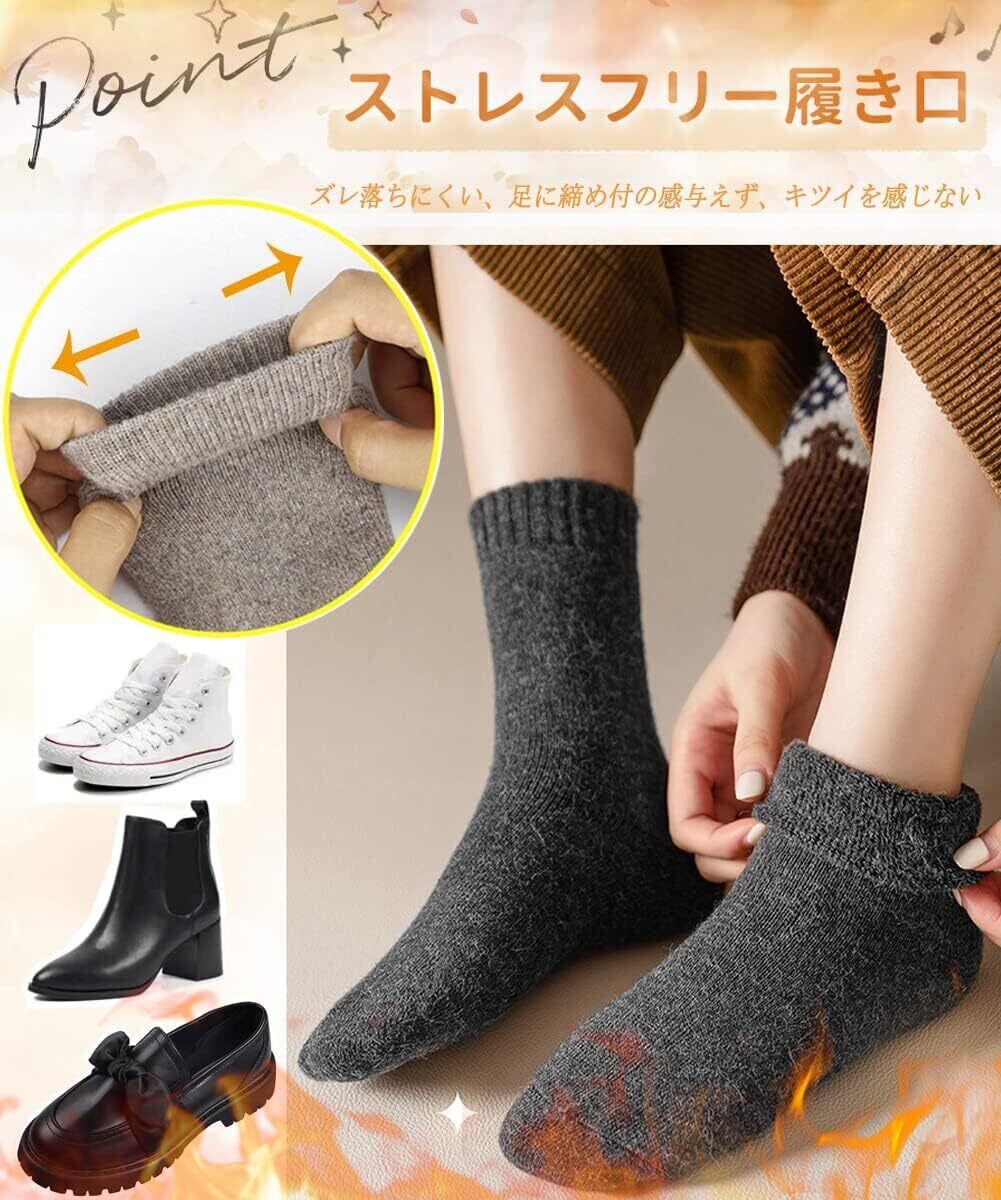 【思った以上暖かい】靴下は30%以上のウールを採用、ウールは保温性に優れているのが特徴です。靴下の裏地は極厚手、保温性は普通の靴下の4-5倍、厳冬に履いても寒さを感じない、蓄熱防寒力が抜群!!履き口からつま先まで全部ふわふわとして、まるで暖かい雲に包まれているような、柔らかな肌触りで足全体をやさしく包み込んでくれるから、足元が24時間ぽかぽかになって幸せな温もりを楽しめます。
