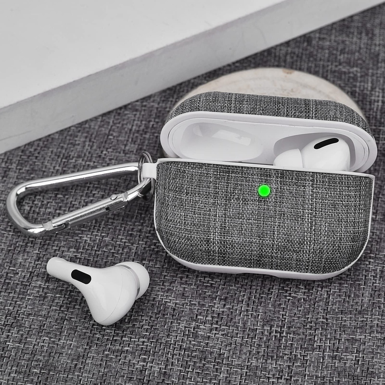 CAGOS AirPods Pro 2 専用ケース 2022専用 エアーポッツプロ カバー アップルイヤホン保護 収納ケース 分離式 カラビナ付き LEDライトが見える ワイヤレス充電対応 キャンバス素材 キズ防止/耐衝撃/防塵/紛失防止/持ち運び便利 (灰色, Pro ケース)