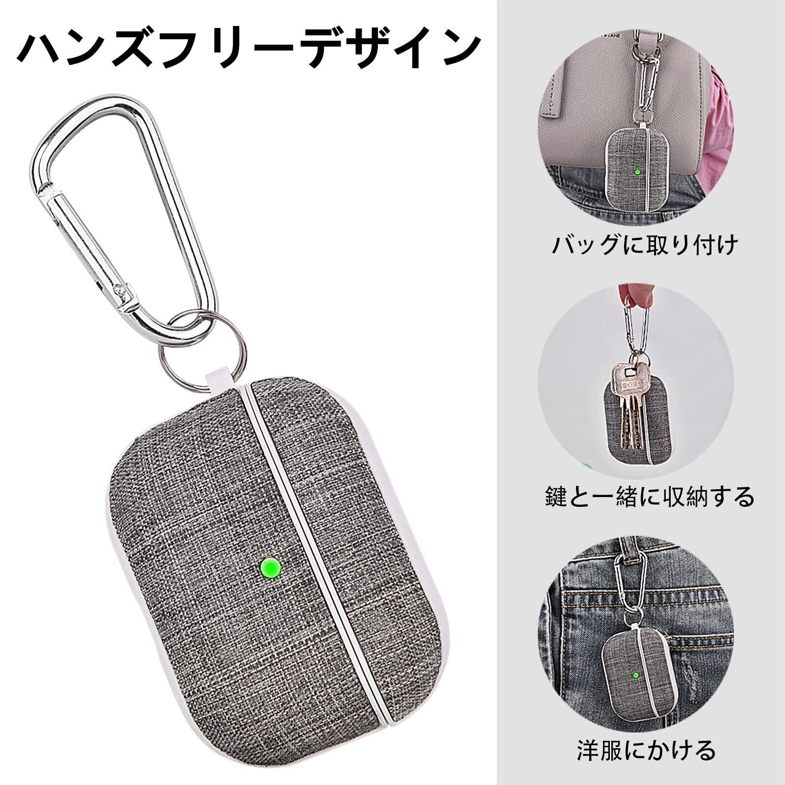 【数量限定】CAGOS AirPods Pro 2 専用ケース 2022専用 エアーポッツプロ カバー アップルイヤホン保護 収納ケース 分離式 カラビナ付き LEDライトが見える ワイヤレス充電対応 キャンバス素材 キズ防止/耐衝撃/防塵/紛失防止/持ち運び便利 (灰色, Pro ケース)