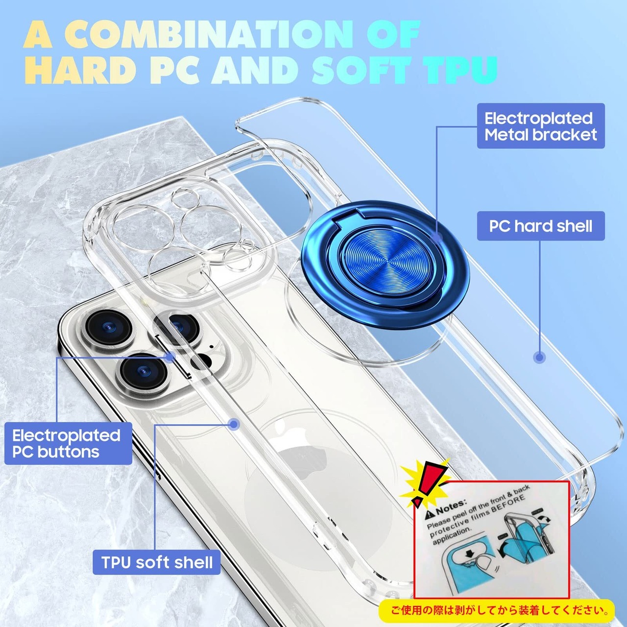 iPhone 14 用 ケース リング付き クリア TPU 耐衝撃 スマホケース 車載対応ホルダー対応 スタンド機能 軽量 薄型 透明 アイフォン14 用 ケース カメラ保護 レンズ保護 衝撃吸収 ストラップホール 一体型 四隅滑り止め 手触り良い 保護カバー 青 SJ18.22