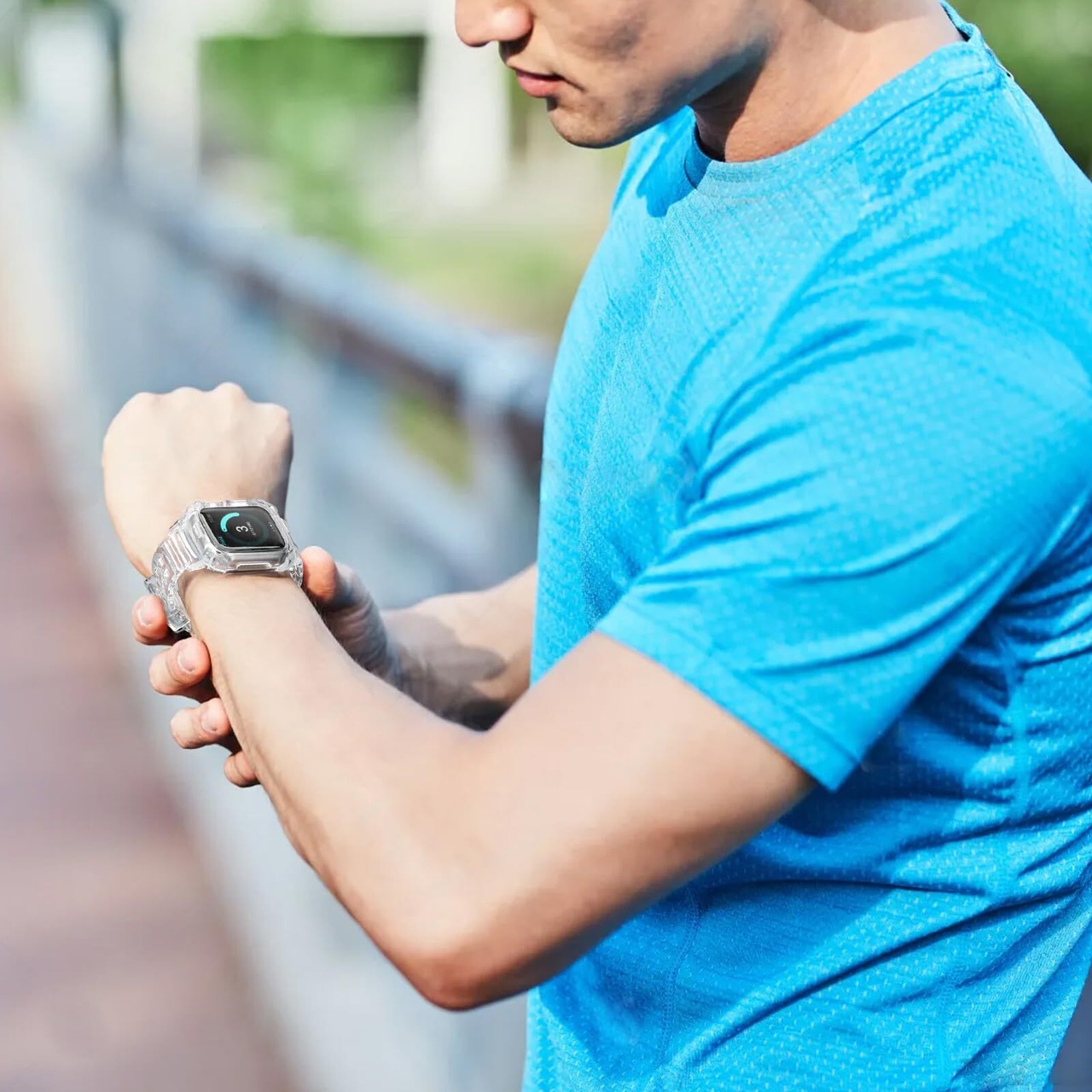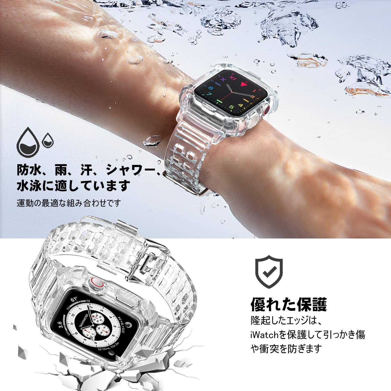 [POLINK] for アップルウォッチ バンド Apple Watch バンド 45mm 44mm 42mm 41mm 40mm 38mm 一体型透明バンド TPU素材 耐衝撃 落下防止 耐久性 全面保護ケース スポーツバンド 通気 クリスタル 長さ調節 Apple Watch Series 9/ 8/7/SE/6/5/4/3/2/1に対応(45/44/42mm クリア)